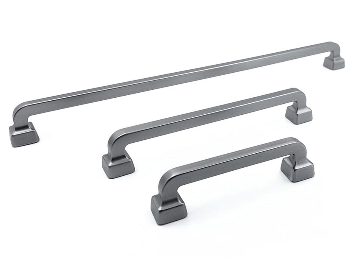 Charakterystyczną cechą tego uchwytu jest jego uniwersalny charakter: mimo że posiada silny, przemysłowy akcent w stylizacji (relingowy kształt, wyraźna nóżka), zachowuje elegancję dzięki prostym liniom i stonowanym detalom. Sprawdzi się doskonale w meblach kuchennych, salonowych czy łazienkowych, zwłaszcza w aranżacjach typu loft, modern lub industrialnych.
