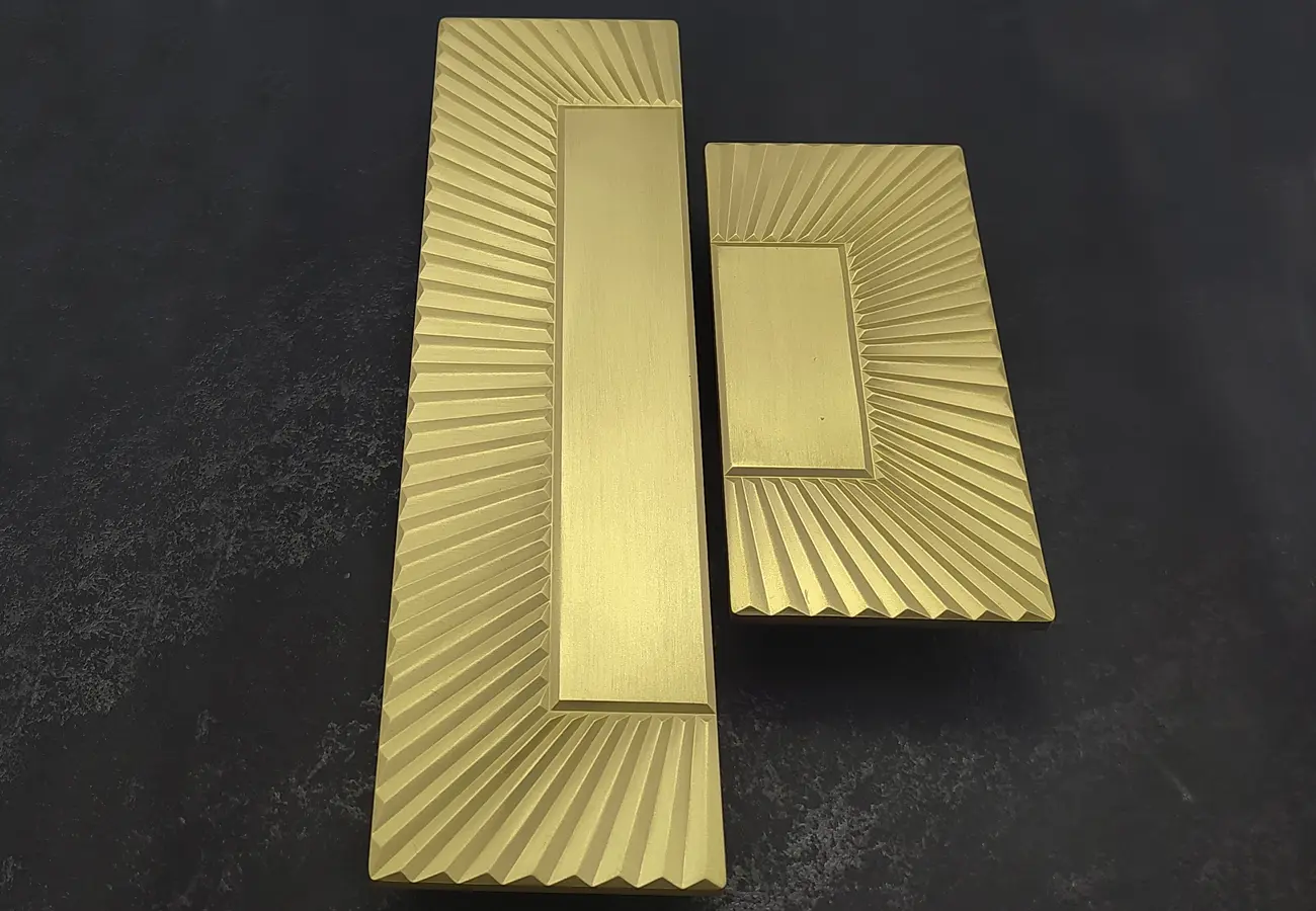 Uchwyty z serii CEBI 1205 to grupa prostokątnych, pełnych uchwytów meblowych o wyraźnej, geometrycznej formie, które łączą dekoracyjny styl z funkcjonalnością i stanowią ciekawy element wykończeniowy mebli kuchennych, pokojowych czy garderobianych. Ich forma opiera się na gładkiej, lekko wypukłej belce przeznaczonej do montażu na frontach za pomocą dwóch punktów mocowania, dzięki czemu zapewniają pewny i wygodny chwyt podczas otwierania szuflad i drzwi. Produkty z tej serii wykonywane są z trwałego stopu ZnAl (stop aluminium i cynku), co gwarantuje im odporność na codzienną eksploatację oraz stabilność konstrukcyjną, a ich prosta, ale elegancka linia sprawdza się zarówno w nowoczesnych, jak i bardziej klasycznych aranżacjach wnętrz.