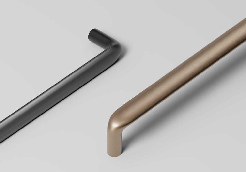 Estetyka i wykończenie uchwytów STATION są jednymi z ich największych atutów. Seria występuje w kilku wariantach powierzchni: klasyczny czarny mat nadaje meblom nowoczesnej i minimalistycznej elegancji, pasując szczególnie do wnętrz w stylu loftowym lub skandynawskim; mosiądz szczotkowany wprowadza ciepłą nutę i bardziej luksusowy akcent. Wszystkie wykończenia są szczotkowane, co nadaje powierzchni subtelnej faktury oraz ułatwia utrzymanie uchwytów w czystości.
