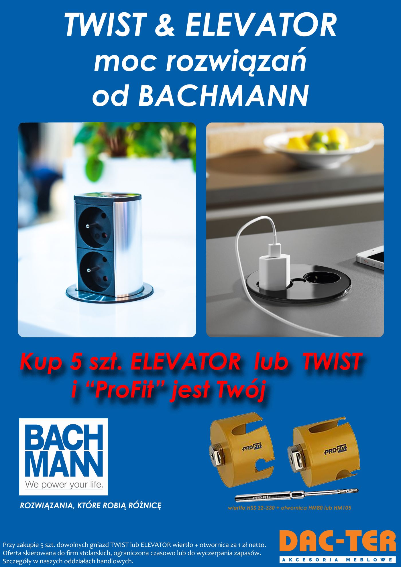 Nowe zestawy zasilające i multimedialne BACHMANN, które powstały dla mebli kuchennych czy biurowych, to idealne produkty gwarantujące jakośc, funkcjonalność i atrakcyjny design. Systemy gniazd blatowych produkowane są w wielu wersjach i na życzenie mogą być skonfigurowane z gniazdami teletechnicznymi oraz gniazdami typu Data dla zasilania obwodów komputerowych.