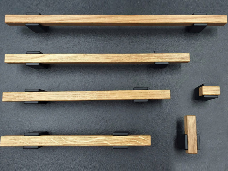 Uchwyty i gałka Z324 materiał: ZnAl + drewno / pokrycie: czarny mat + drewno dąb