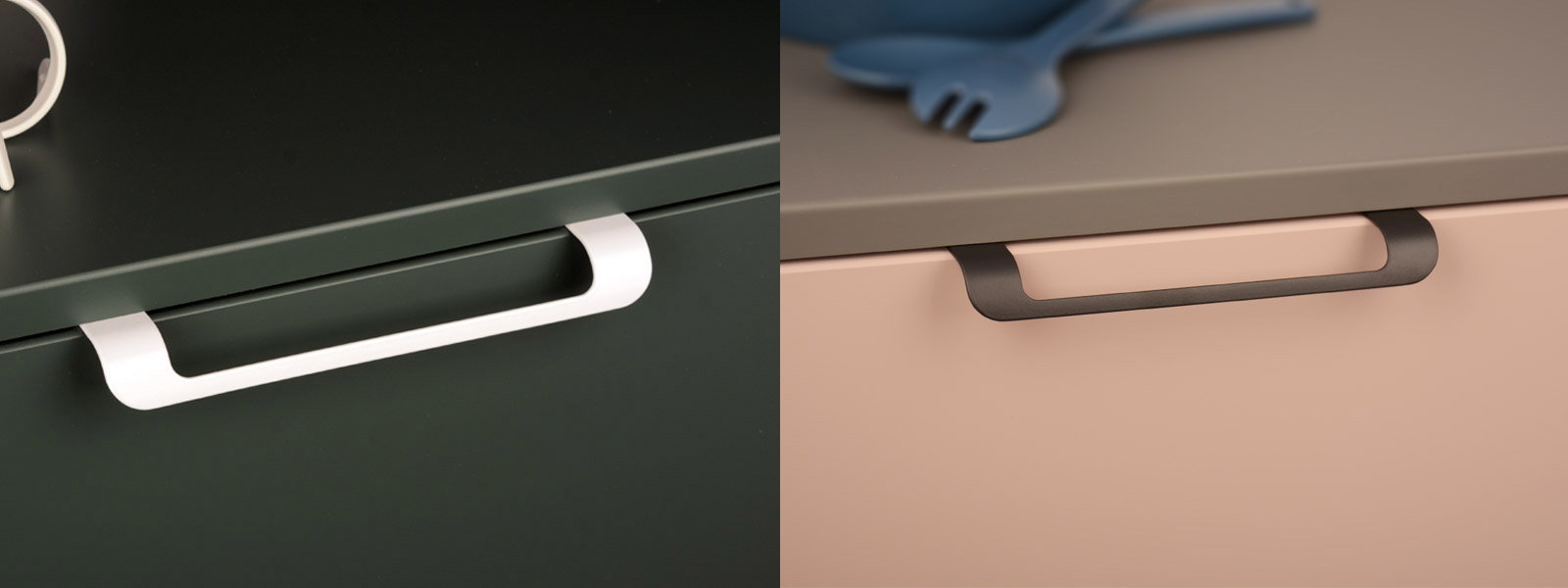 Seria 3808 występuje w bardzo szerokiej gamie rozmiarów, od bardzo krótkich uchwytów z rozstawem 32 mm aż po długie listwy o rozstawie 864 mm, co daje dużą elastyczność przy projektowaniu frontów szafek, szuflad i mebli o różnych wymiarach. Jej wykończenia obejmują między innymi klasyczny czarny mat, który nadaje meblom nowoczesny, elegancki charakter, jak również modny kolor kaszmir półmat, który świetnie współgra z jasnymi lub stonowanymi frontami.