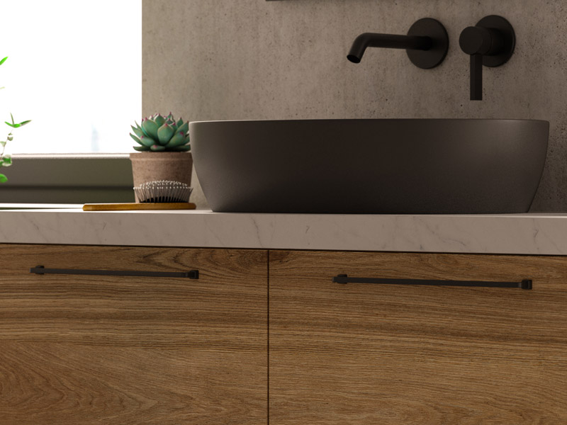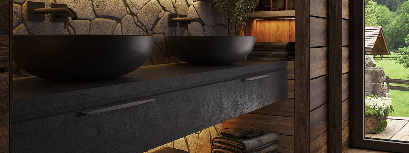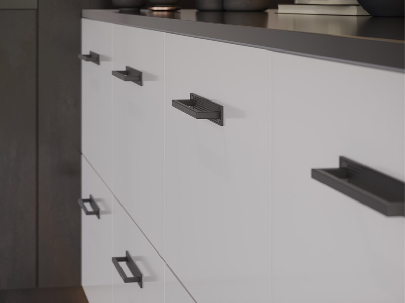 Uchwyty z serii 2536 cechują się prostą, minimalistyczną formą pasującą do różnych wnętrz – od kuchni po łazienki czy garderoby. Dzięki matowej czerni PB12 uzyskują nowoczesny, industrialny charakter, świetnie komponują się zarówno z frontami białymi, jak i drewnianymi.