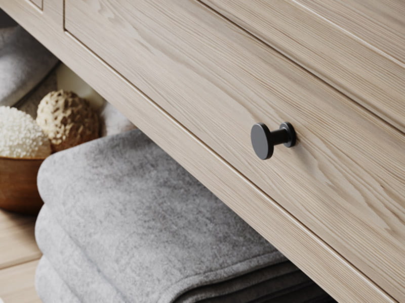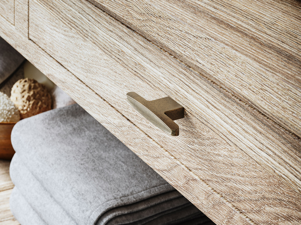 Uchwyty z tej linii wyróżniają się minimalistyczną formą — prostą i zrównoważoną — która sprawdzi się w wielu stylach wnętrz: od nowoczesnych kuchni po klasyczne meble łazienkowe i garderoby. Matowe wykończenia nadają całości subtelnie industrialny charakter, a chromowane i mosiężne wersje dodają szyku i elegancji.