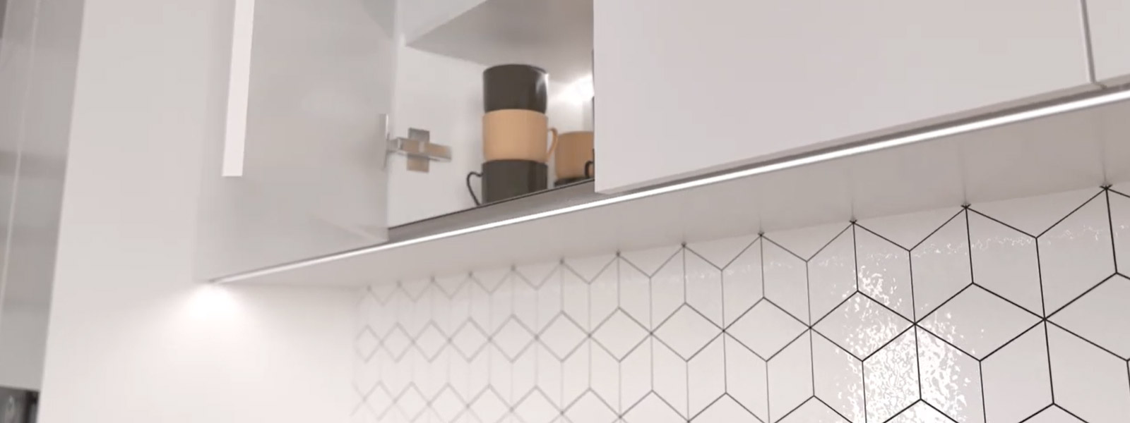 Profil wieńcowy LED GLAX to specjalny aluminiowy profil LED opracowany przez firmę GTV, przeznaczony do montażu w dolnej części mebli wiszących, przede wszystkim w kuchniach. Profil wieńcowy GLAX pełni podwójną funkcję: z jednej strony zastępuje tradycyjne uchwyty do otwierania frontów, a z drugiej zapewnia estetyczne i funkcjonalne oświetlenie liniowe LED tuż pod szafkami. Profil ten jest zaprojektowany tak, aby był montowany bezpośrednio na krawędzi płyty meblowej o standardowej grubości (np. 18 mm), co pozwala uniknąć konieczności frezowania – po prostu się go „nabija” na dolny wieńcowy pas korpusu szafki. Dzięki temu fronty meblowe można otwierać od dołu bez potrzeby stosowania uchwytów, co podkreśla minimalistyczny, nowoczesny wygląd zabudowy.