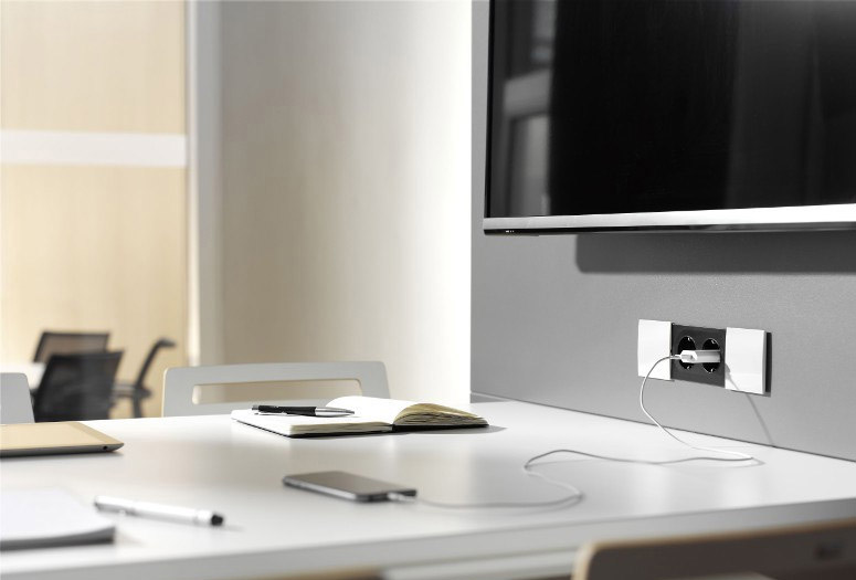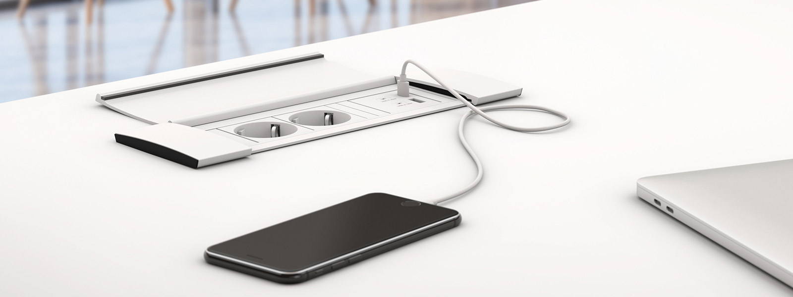 BACHMANN - Gniazdo LOOP IN CHARGE zarządzanie kablami w nowoczesnym, zorganizowanym miejscu pracy: design łączy się z wydajnym ładowaniem dzięki LOOP IN CHARGE.