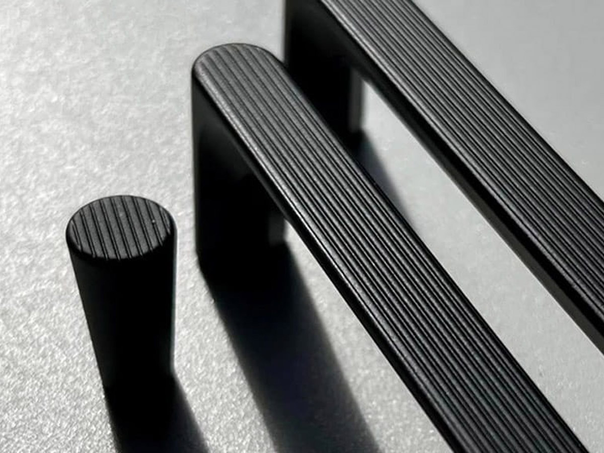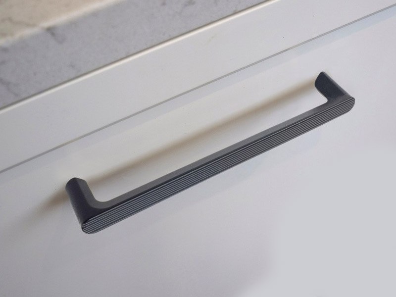 Choć forma uchwytu wydaje się prosta, została subtelnie urozmaicona delikatnymi, poziomymi żłobieniami w górnej części, które nadają mu elegancji i unikalnego wyrazu. To detal, który przyciąga uwagę, nie zaburzając minimalistycznej estetyki całości.
