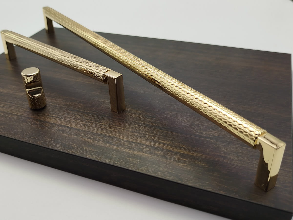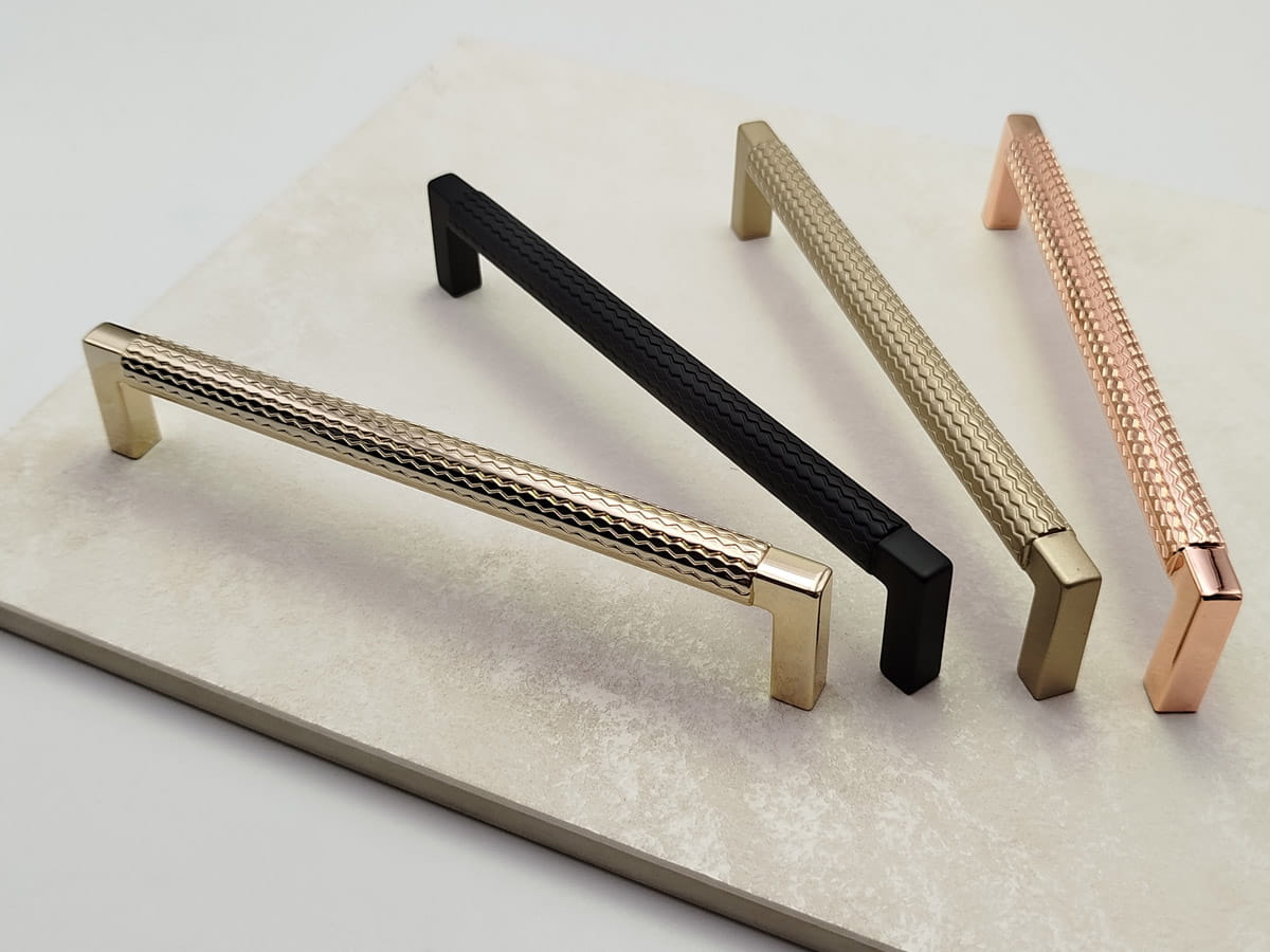 Uchwyty radełkowane KOBRA (TRAMA) 15191 materiał: ZnAl / pokrycie: chrom, czarny mat, miedź połysk, mosiądz połysk, tytan, złoty shadow