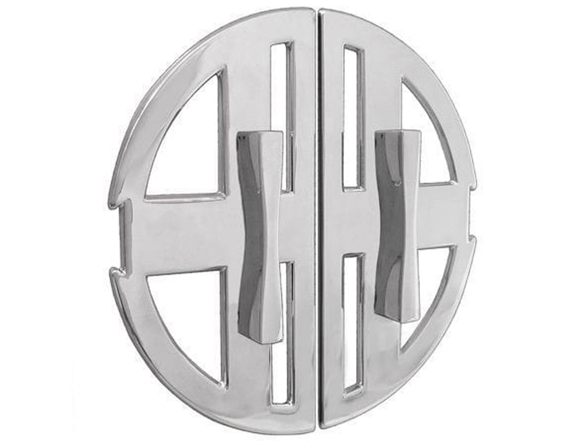 Model posiada rozstaw otworów montażowych wynoszący 64 mm oraz średnicę zewnętrzną uchwytu około Ø 168 mm — dane te wskazują, że uchwyt ma duży rozmiar i może stanowić wyrazisty akcent aranżacyjny. Wykończenie powierzchni w wersji „chrom połysk” podkreśla jego designerski charakter oraz nadaje efekt lśniącej elegancji. Dzięki temu uchwyt dobrze komponuje się z metalowymi detalami w meblach, dodatkami ze stali nierdzewnej lub chromowanymi elementami w przestrzeni kuchennej czy łazienkowej.