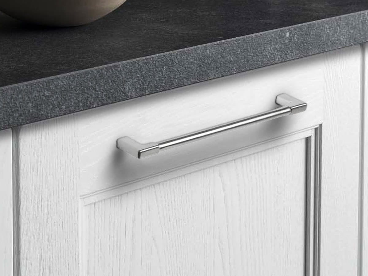 Uchwyt do mebli Brera 15217 z kolekcji Bosetti Marella to elegancki, relingowy uchwyt, który łączy styl industrialny z klasyczną prostotą. Wyróżnia się starannie zaprojektowaną, wyrazistą formą: smukła, prosta rękojeść kontrastuje tu z nieco masywniejszą podstawą („nóżką”), która stabilnie osadza uchwyt na froncie mebla.