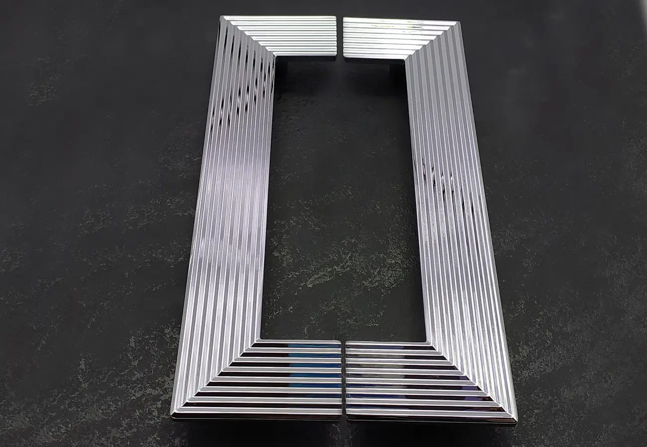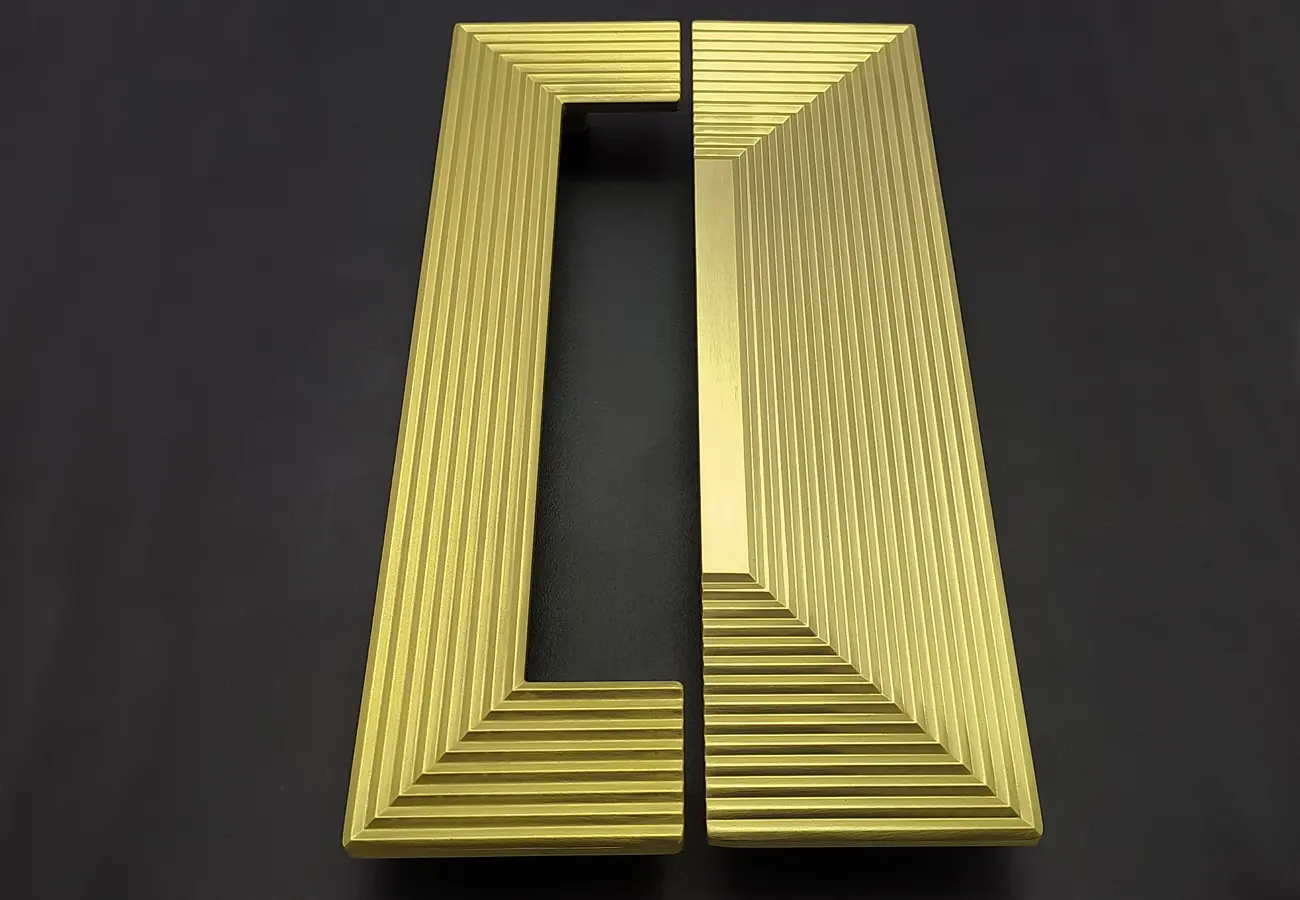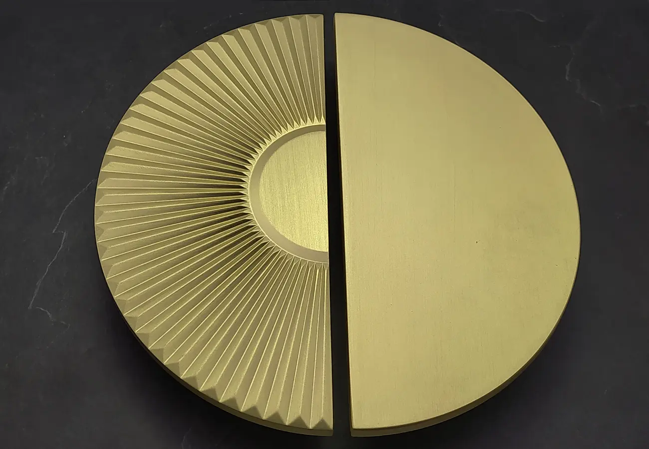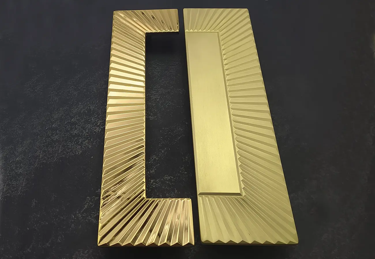 Uchwyty meblowe z serii CEBI 1193 to charakterystyczne półokrągłe elementy o wyraźnie dekoracyjnym, a jednocześnie funkcjonalnym charakterze. Wykonane są z trwałego stopu metali ZnAl, co zapewnia im wysoką odporność na uszkodzenia mechaniczne oraz stabilność podczas codziennego użytkowania. Ich forma opiera się na pełnym, masywnym półkolu, które po zamontowaniu na froncie mebla tworzy wyraźny, lecz harmonijny akcent wizualny. Szczególną cechą tej serii jest ryflowana struktura powierzchni – regularne, podłużne żłobienia biegnące wzdłuż całego łuku uchwytu. Taka faktura nadaje uchwytom elegancki wygląd, wzbogaca efekt gry światła na metalu oraz poprawia komfort chwytu, zapobiegając ślizganiu się dłoni.
