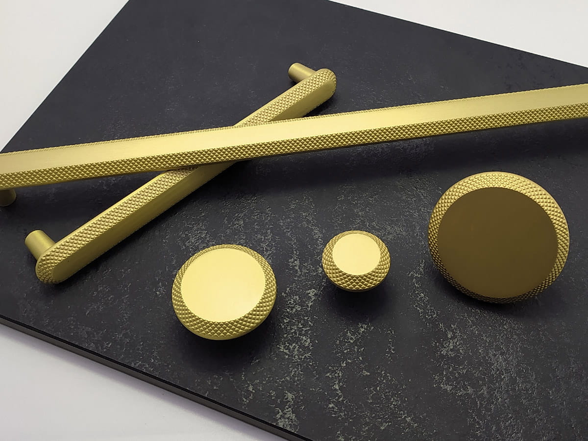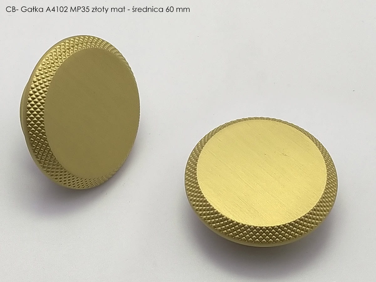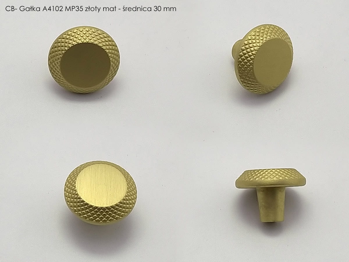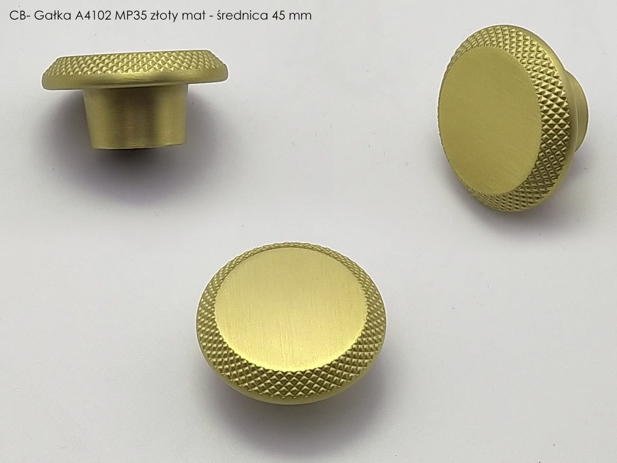 Oferta CEBI obejmuje także gałki meblowe, które są mniejszymi, okrągłymi detalami stosowanymi np. w drzwiczkach szafek. Przykładowo, gałka A4102 PC35 w złotym macie ma prostą, ponadczasową konstrukcję idealną do pokojów lub garderób, zachowując jednocześnie spójność stylistyczną z uchwytami z tej samej linii wzorniczej.