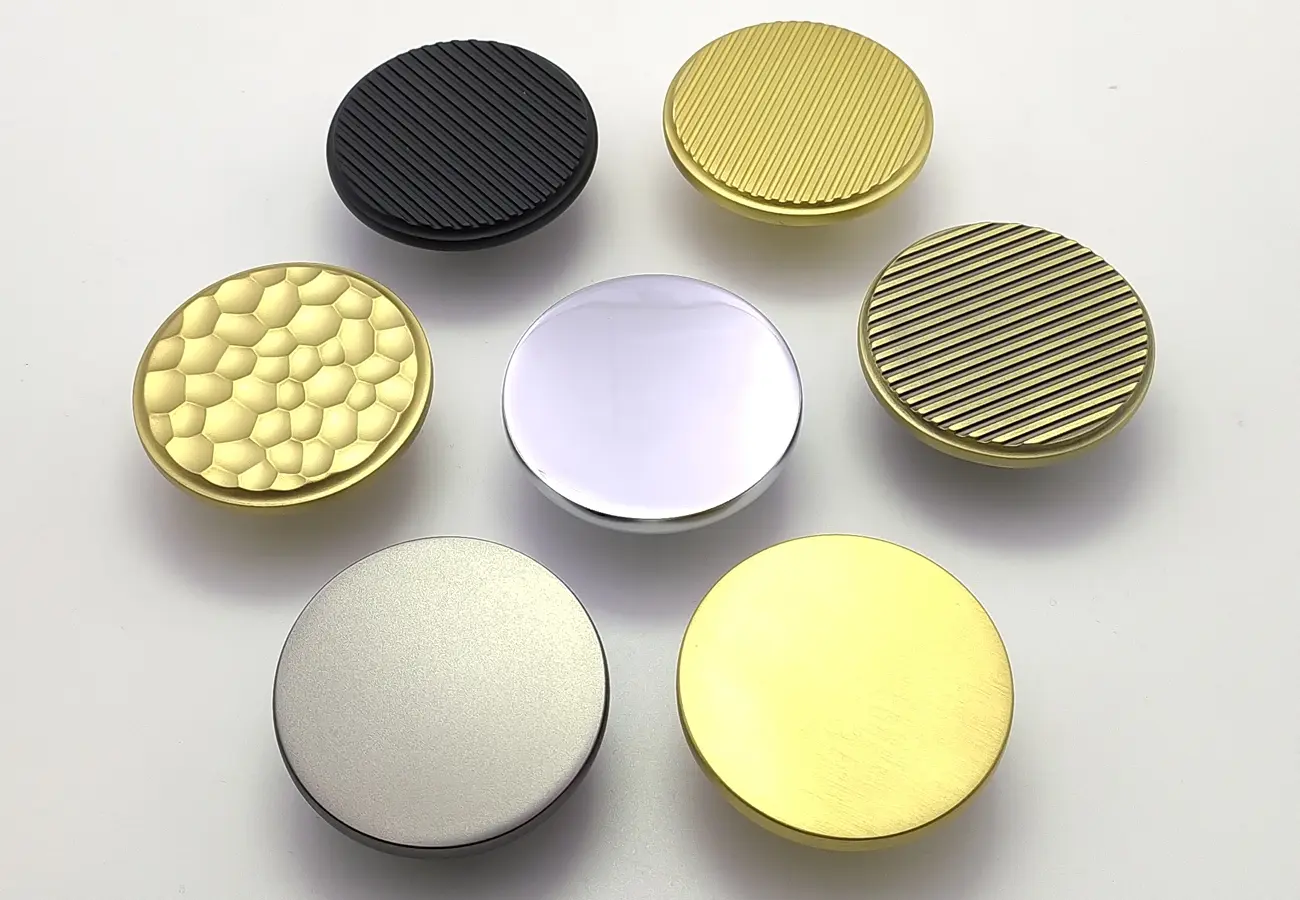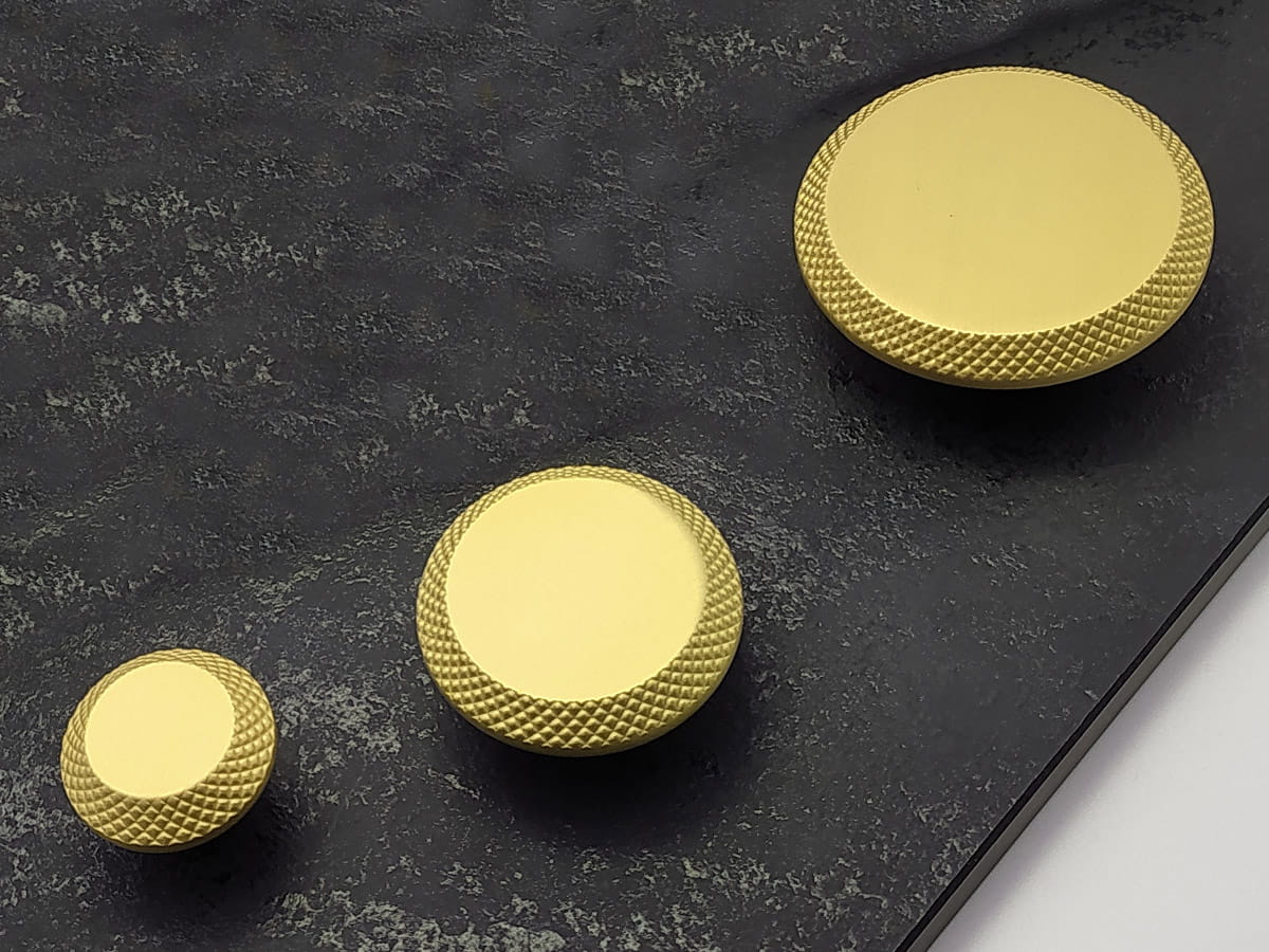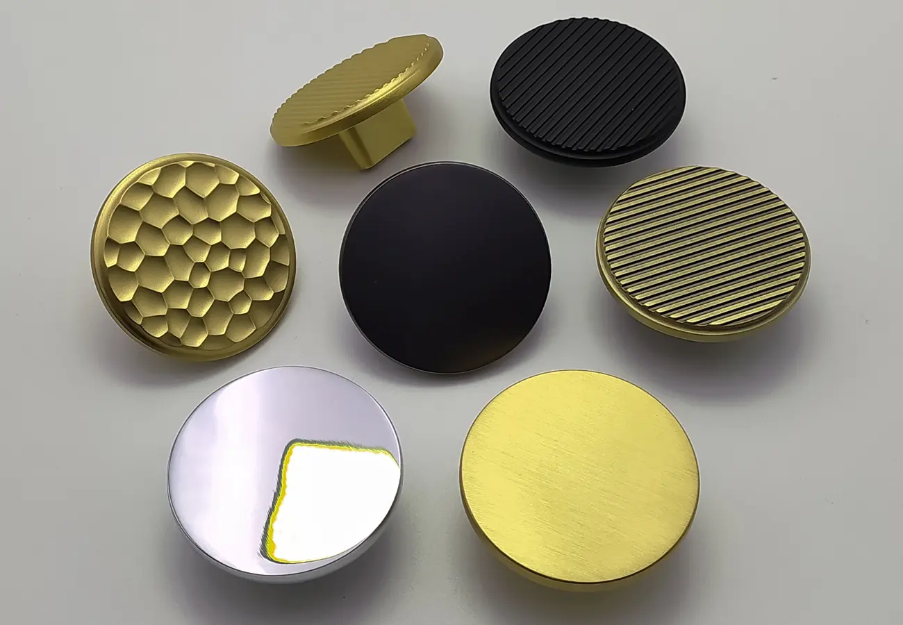 Strukturalnie modele te mają jednakową formę – są to gałki w postaci pojedynczego przycisku, których podstawowym elementem konstrukcyjnym jest metalowy korpus wykonany z trwałego stopu zamaku, zapewniający odporność na uszkodzenia i intensywne użytkowanie. Różnice między poszczególnymi wariantami polegają przede wszystkim na średnicy części czołowej oraz wykończeniu powierzchni, co wpływa na ich optyczny charakter oraz dopasowanie do konkretnego stylu wnętrza.
