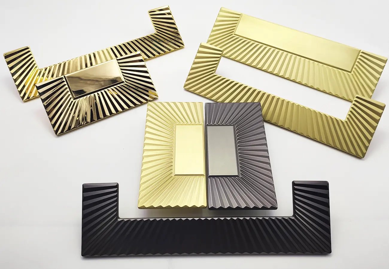 Kolorystyka serii A4102 obejmuje zarówno wykończenie w odcieniu dymno-czarnym (antracytowym), które nadaje się do nowoczesnych wnętrz o stonowanej tonacji, jak i wykończenia w kolorze złotym lub złotym macie, które dodają meblom elegancji i cieplejszego akcentu dekoracyjnego. Dzięki temu każdy z wariantów A4102 może być dobrany do stylu mebli – od minimalistycznych frontów w odcieniach bieli lub szarości po bardziej klasyczne zabudowy z drewnianymi lub pastelowymi frontami.