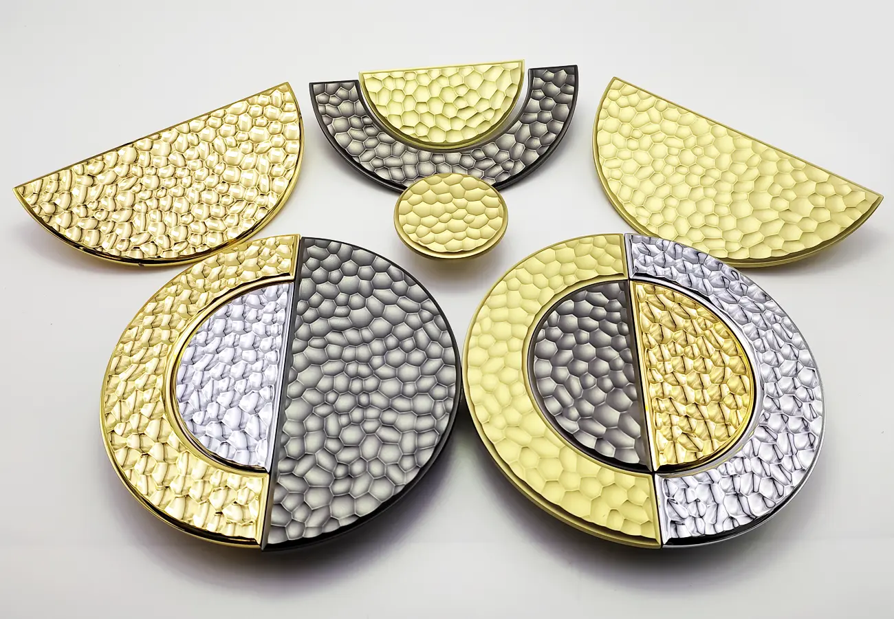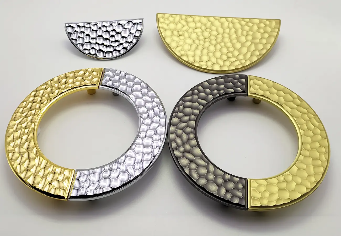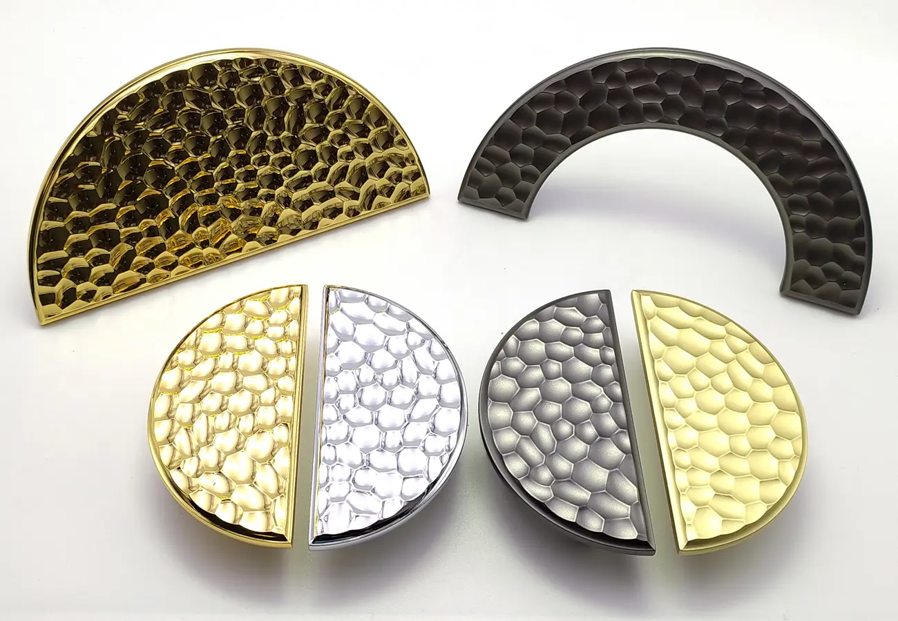 Seria 1194 firmy CEBI to kolekcja półokrągłych uchwytów meblowych o wyraźnie dekoracyjnej strukturze, które łączą funkcjonalny chwyt z estetycznym detalem wykończeniowym. Uchwyty te wykonane są ze stopu metalu typu zamak, co zapewnia im trwałość i solidność użytkową, a ich design inspirowany jest klasycznymi formami półkoli, które świetnie sprawdzają się zarówno w nowoczesnych, jak i bardziej eleganckich aranżacjach wnętrz.