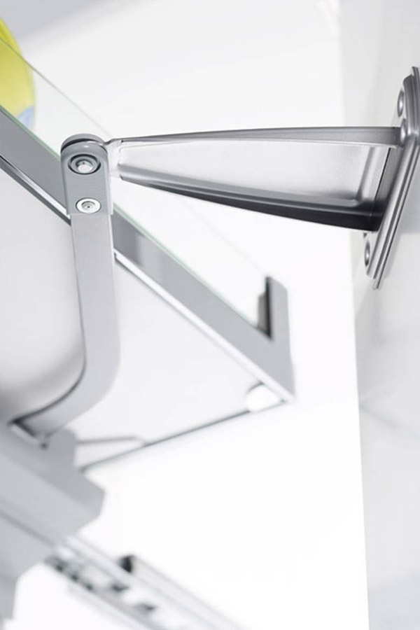 Wyciąg wysoki - CONVOY Premio - Wystarczy jedno pociągnięcieWyciąg wysoki CONVOY Premio to nie tylko bardzo praktyczne rozwiązanie, ale także dzięki całemu szeregowi szczegółów produkt najwyższej klasy pod względem technicznym. Otwarcie frontu, przy minimalnym kącie otwarcia 135°, inicjuje serię płynnych ruchów, a system hamowania SoftStoppPro łagodnie zatrzymuje półki przed szafą.