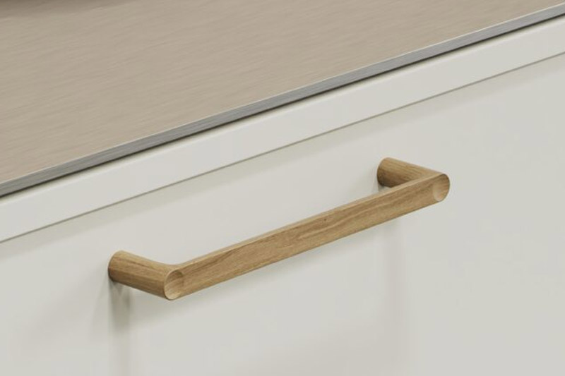 JOIN znakomicie odnajduje się we wnętrzach urządzonych w stylu skandynawskim, japandi oraz nowoczesnym minimalistycznym. Naturalne drewno dębowe harmonizuje z białymi, szarymi i beżowymi frontami, sprawiając, że pomieszczenie nabiera ciepłego, przytulnego i spójnego charakteru. W zestawieniu z czarnymi detalami lub kamiennym blatem uchwyt zyskuje bardziej nowoczesny, wyrafinowany wyraz, który podkreśla elegancję mebli. Dzięki temu świetnie sprawdza się zarówno w jasnej kuchni inspirowanej stylistyką nordycką, jak i w eleganckiej, minimalistycznej przestrzeni.