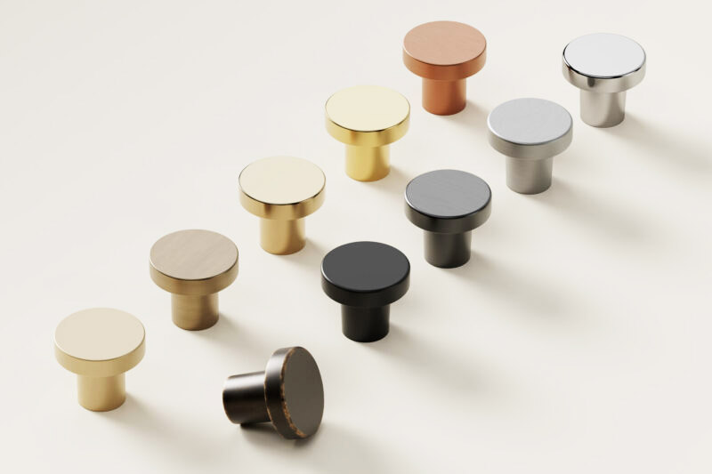 Gałki POINT dostępne są w kilku wariantach wykończeń kolorystycznych, co pozwala dopasować je do charakteru mebli i ogólnej palety wnętrza. Najczęściej spotykane kolory to stal szczotkowana, złoty szczotkowany oraz czarny mat, które mogą podkreślić zarówno nowoczesne, jak i bardziej eleganckie aranżacje.