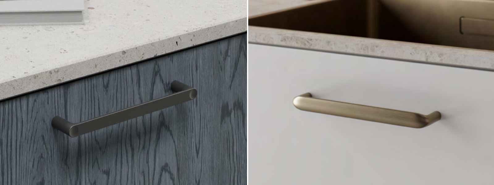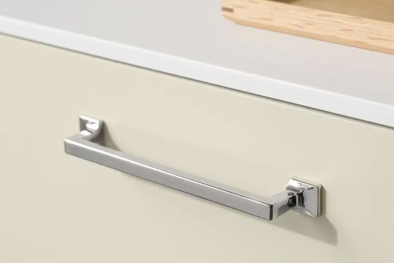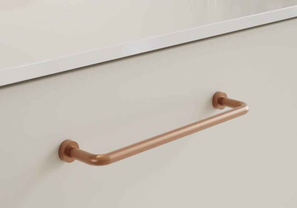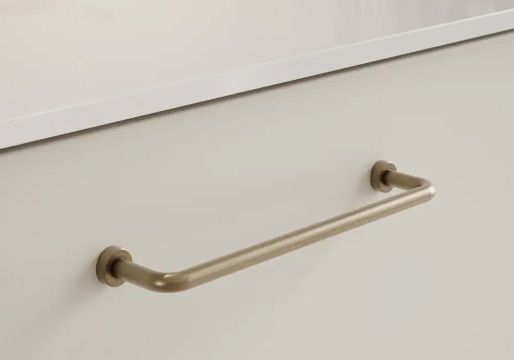 Uchwyty Villa to najpełniejsza część kolekcji – wyróżniają się subtelną, podłużną formą, w której czyste kontury spotykają się z delikatnie zaoblonym profilem. Dostępne są w dwóch długościach odpowiadających rozstawom otworów montażowych 128 mm i 192 mm, co pozwala dopasować je do różnej wielkości frontów szafek i szuflad. Dzięki temu modele 128 mm cechują kompaktowa, zwarta sylwetka idealna do mniejszych powierzchni, natomiast wersje 192 mm wprowadzają bardziej wyrazisty akcent do większych mebli. Każdy uchwyt wykonany jest z wysokiej jakości stopu (zamak), a jego design łączy harmonię klasycznych form z funkcjonalnością współczesnego detalu ‒ dzięki temu zachowuje lekkość i ergonomię podczas codziennego użytkowania .