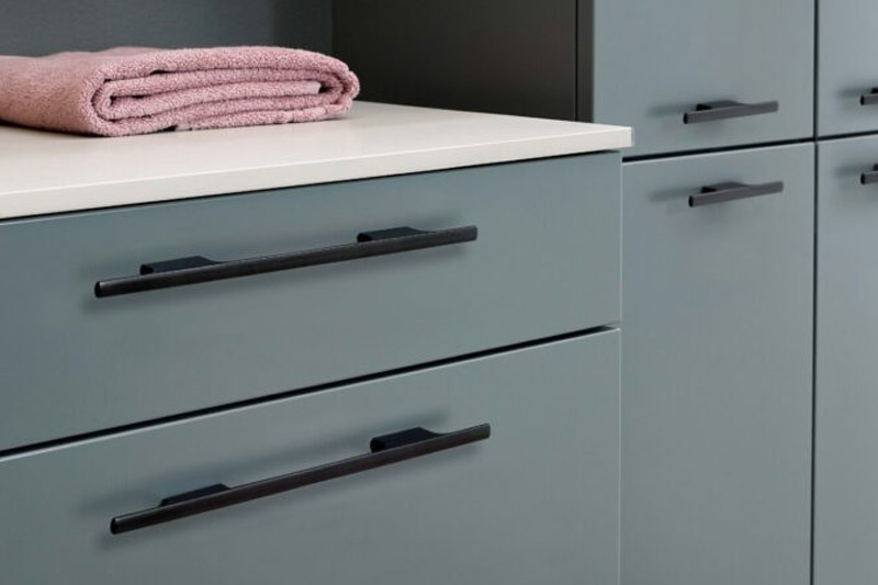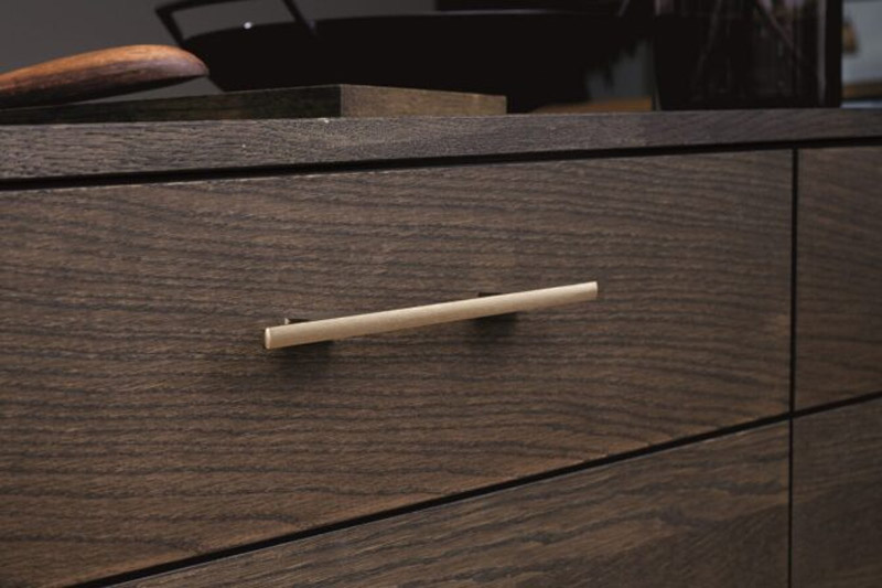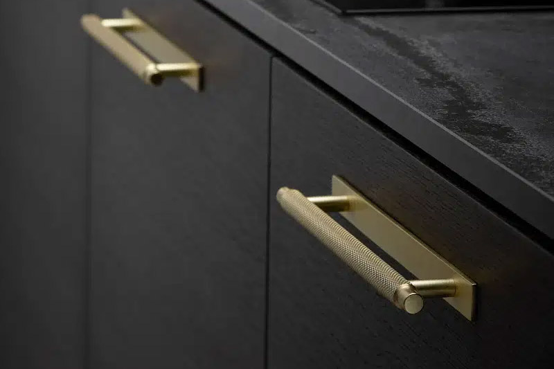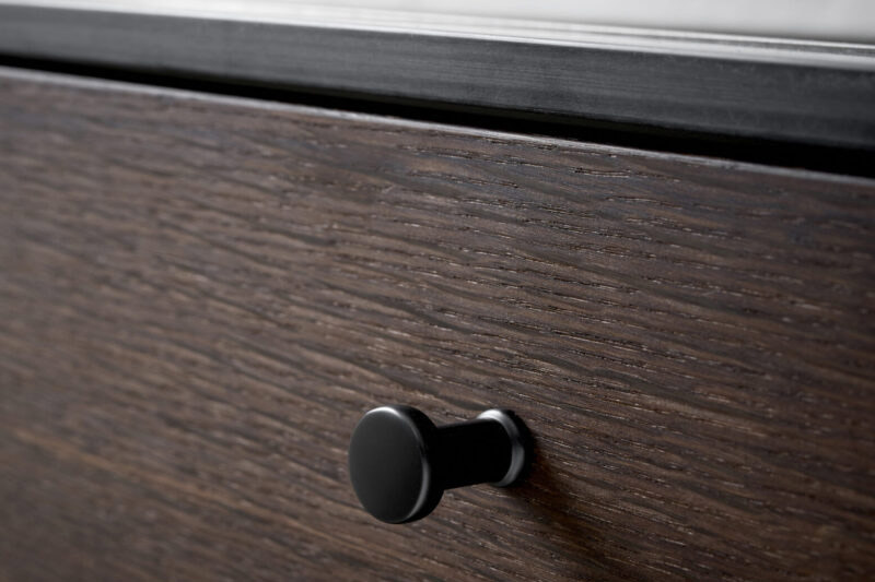 Uchwyty MANOR oferowane są w różnych rozmiarach, kształtach i wykończeniach, a ich paleta kolorystyczna obejmuje dwa odcienie: czerń oraz antyczny mosiądz. Oba wpisują się w estetykę loftową, z czego czerń idealnie akcentuje aranżacje modernistyczne, natomiast mosiądz – przypominający przyciemnione złoto – podkreśla architekturę wnętrz tradycyjnych, vintage czy retro, sprawdzając się jednocześnie we współczesnych trendach. Choć uchwyty MANOR są subtelnym elementem, wyraźnie wpływają na styl mebli i komfort ich użytkowania.