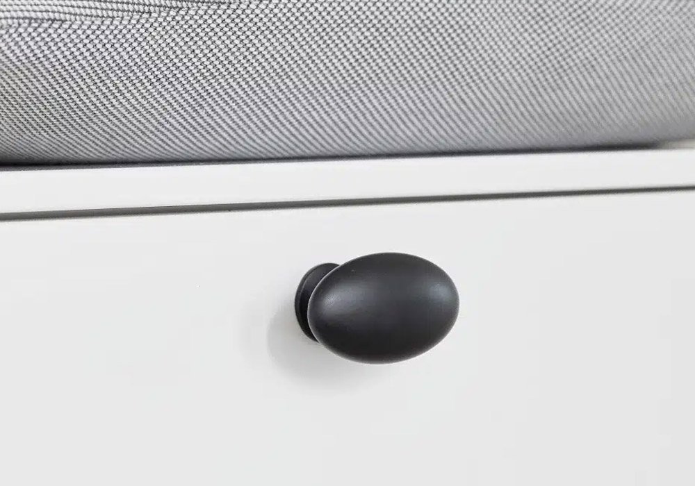 Gałka POINT ma średnicę około 28 mm i wysokość około 25 mm, co czyni ją proporcjonalną i wygodną w użytkowaniu, nie dominującą na frontach szafek ani szuflad. Taki rozmiar sprawia, że gałki są praktyczne w codziennym użytkowaniu — łatwo je chwycić i otworzyć mebel, a jednocześnie subtelnie zdobią mebel, nie przytłaczając jego formy.