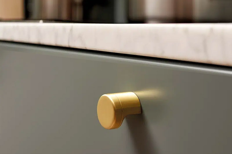 Złote wykończenie uchwytu znakomicie odnajduje się we wnętrzach klasycznych oraz utrzymanych w stylistyce glamour. W kuchni doskonale współgra z białymi lub czarnymi frontami, ale równie efektownie prezentuje się na zabudowie w odcieniach ciemnej zieleni, granatu czy grafitu, które w ostatnich sezonach cieszą się ogromną popularnością. W zestawieniu z takim tłem złote akcenty tworzą elegancki kontrast i dodają meblom szlachetności. W tradycyjnych kuchniach, gdzie dominuje naturalne drewno, często wybierane są warianty złotych uchwytów z ceramicznymi elementami, które subtelnie podkreślają klasyczny charakter pomieszczenia.