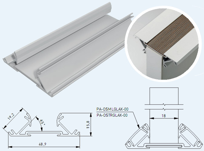 Profil LED - GLAX (nabijany, dwustronny, do wypełnienia obrzeżem) |