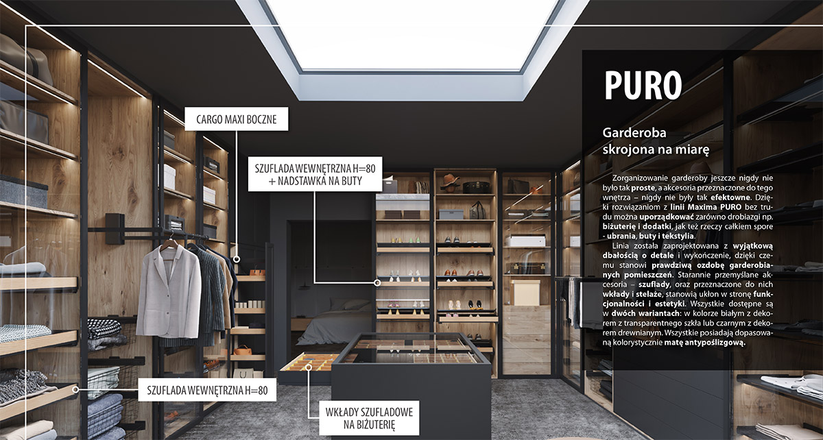 Nowa linia Maxima PURO zawiera szuflady, cargo i cornery z linii Maxima PURO, które pozwalają optymalnie wykorzystać przestrzeń mebli,