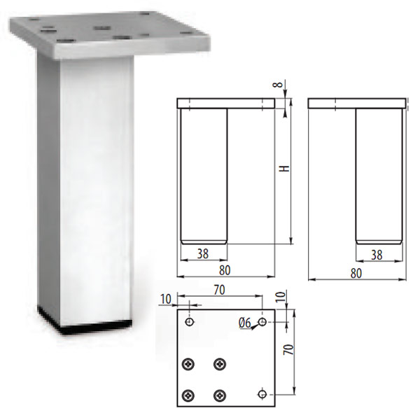 materiał: alu wysokość 50, 100, 112, 120, 150, 170, 180, 200, 220, 400mm kolor: alu |