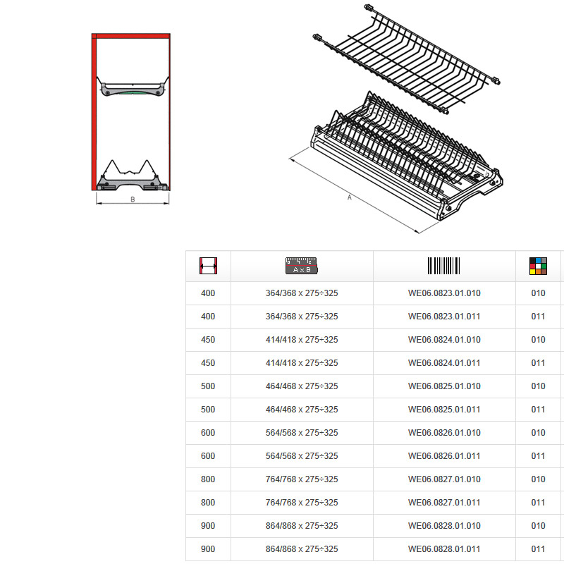 Ociekarki do naczyń montowane wewnątrz szafki | |||