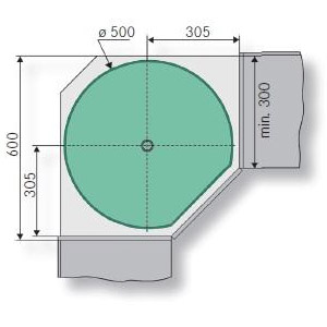 Obrotnica Arena - obracane półki również w górnych szafkachSzafkę górną można także wyposażyć w karuzelę. Gotowe rozwiązanie do wiszącej szafki narożnej. |