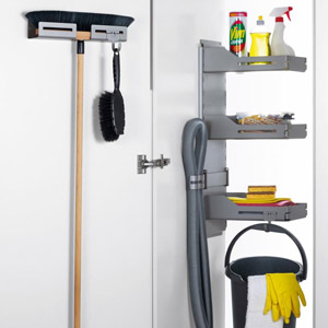 Sesam - łatwa organizacja szafy gospodarczejPełne dno półek daje możliwość przechowywania przedmiotów w nietypowych wymiarach. Uchwyt na wąż do odkurzacza i haczyki mogą być przewieszane i indywidualnie dostosowane do potrzeb użytkownika. |