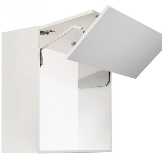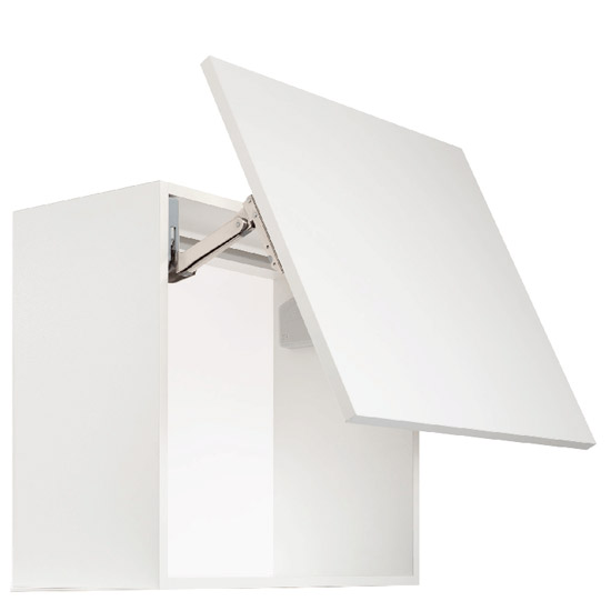 To idealny wybór, gdy szafki są ustawione jedna nad drugą albo w przypadku szafek z oświetleniem górnym lub gzymasami. Zintegrowany ogranicznik wielopozycyjny gwarantuje, że front zatrzyma się w dowolnym położeniu.
