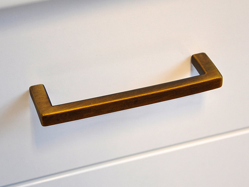 Wyróżnia się lekką, ale solidną konstrukcją – wykonany z metalu, najczęściej pokrywanego trwałym lakierem proszkowym lub warstwą galwaniczną. Jego subtelna szerokość i niewielka wysokość nadają mu nowoczesny charakter, nie dominując przy tym wizualnie nad bryłą mebla. Dzięki dużemu wyborowi wykończeń – od chłodnej stali nierdzewnej i błyszczącego chromu, po matową czerń i ciepłe odcienie antycznego złota – łatwo dopasować go do różnych stylów wnętrzarskich, od minimalistycznych po bardziej klasyczne czy industrialne.