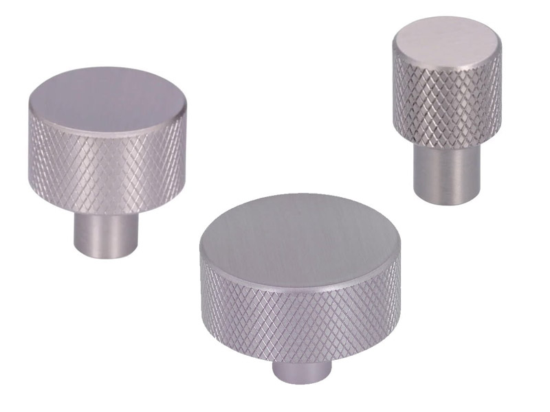 Dostępne w trzech rozmiarach – średnice 16 mm, 24 mm i 33 mm – z wysokością około 25 mm i stabilną podstawą o średnicy 10 mm, zapewniają wygodny chwyt oraz wyrazistą fakturę dzięki radełkowaniu. Ten charakterystyczny wzór nie tylko podkreśla design, ale także poprawia przyczepność podczas użytkowania.