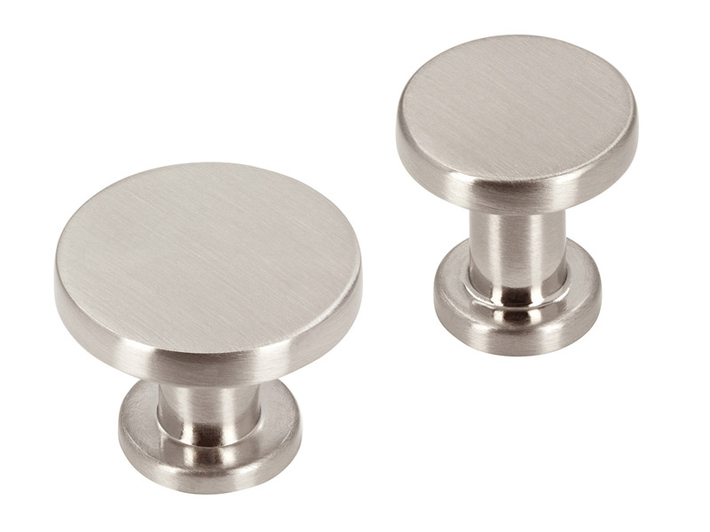 Gałka jest dostępna w dwóch praktycznych rozmiarach – o średnicy około 20 mm oraz 30 mm. Takie zróżnicowanie pozwala na idealne dopasowanie do rozmiaru szuflady, drzwiczek czy frontu meblowego, zapewniając wygodne i komfortowe użytkowanie na co dzień. Mimo swojego minimalistycznego wyglądu, gałka Siro 2505 wyróżnia się solidnym wykonaniem, co gwarantuje jej trwałość i odporność na codzienne zużycie.