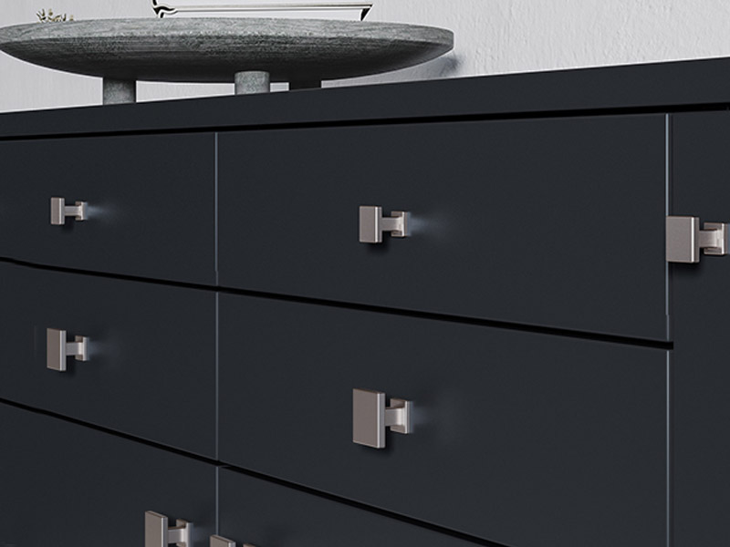 Gałka meblowa Siro 2506 to przykład eleganckiego i funkcjonalnego wzornictwa, które świetnie odnajduje się zarówno w nowoczesnych, jak i bardziej klasycznych wnętrzach. Wykonana z wysokiej jakości metalu, cechuje się trwałością oraz odpornością na codzienne użytkowanie. Jej prosty, geometryczny kształt – sześcienna bryła nadaje jej minimalistyczny, a zarazem nowoczesny charakter, który dobrze wpisuje się w estetykę mebli kuchennych, łazienkowych, a także biurowych czy dziecięcych.