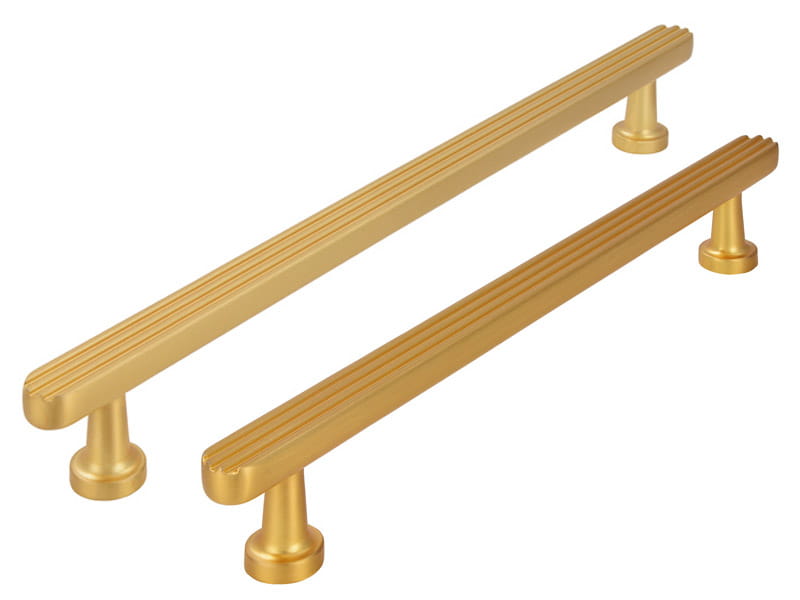 Uchwyty meblowe SIRO 2457 wyróżniają się nowoczesnym, eleganckim wyglądem dzięki wyraźnie ryflowanej (prążkowanej) powierzchni, która pełni zarówno dekoracyjną, jak i praktyczną funkcję. Ich struktura nie tylko dodaje meblom charakteru, ale także ułatwia pewny chwyt, co zwiększa komfort codziennego użytkowania.