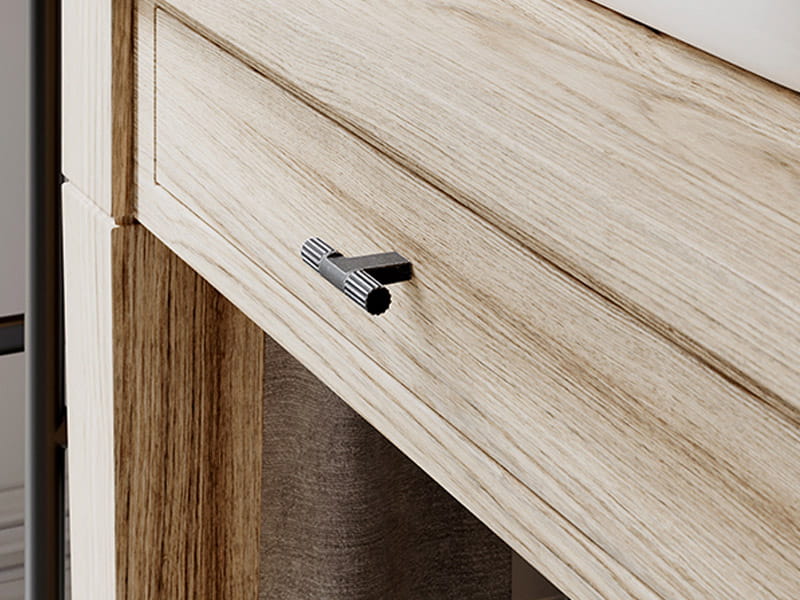 Funkcjonalność tej gałki opiera się nie tylko na jej ergonomicznej formie, ale także prostym montażu – wystarczy jeden otwór, aby stabilnie zamocować uchwyt. Kształt litery „T” sprawia, że model idealnie sprawdza się na wąskich frontach, gdzie tradycyjne gałki mogą być zbyt masywne. Można go montować zarówno poziomo, jak i pionowo, w zależności od potrzeb i układu mebli.
