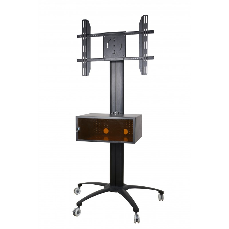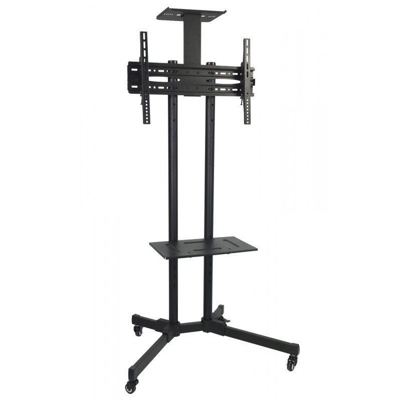 Stojak do telewizorów o przekątnej ekranu od 32 do 70". Regulacja wysokości montażu uchwytu ipółek. Kółka z hamulcami.