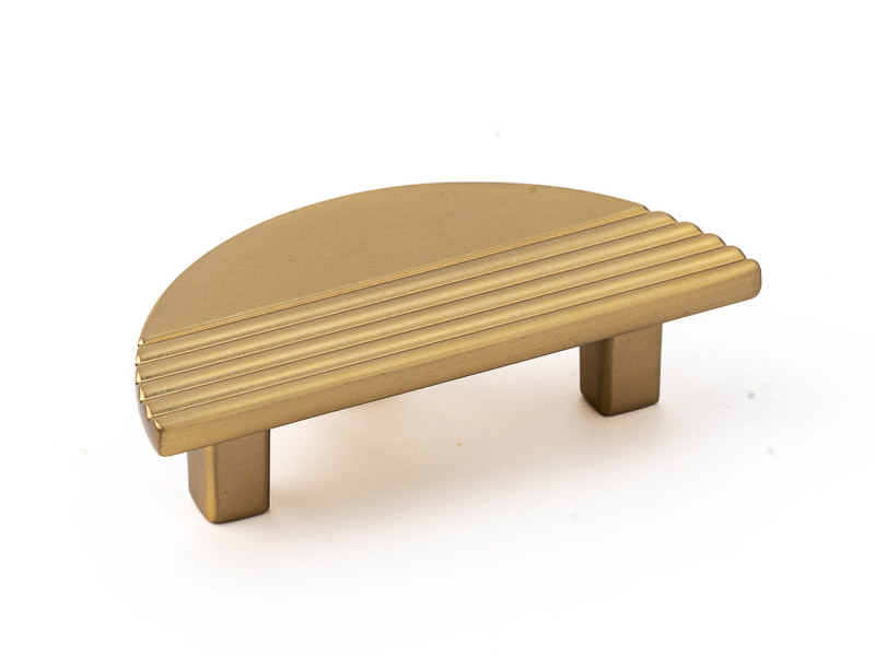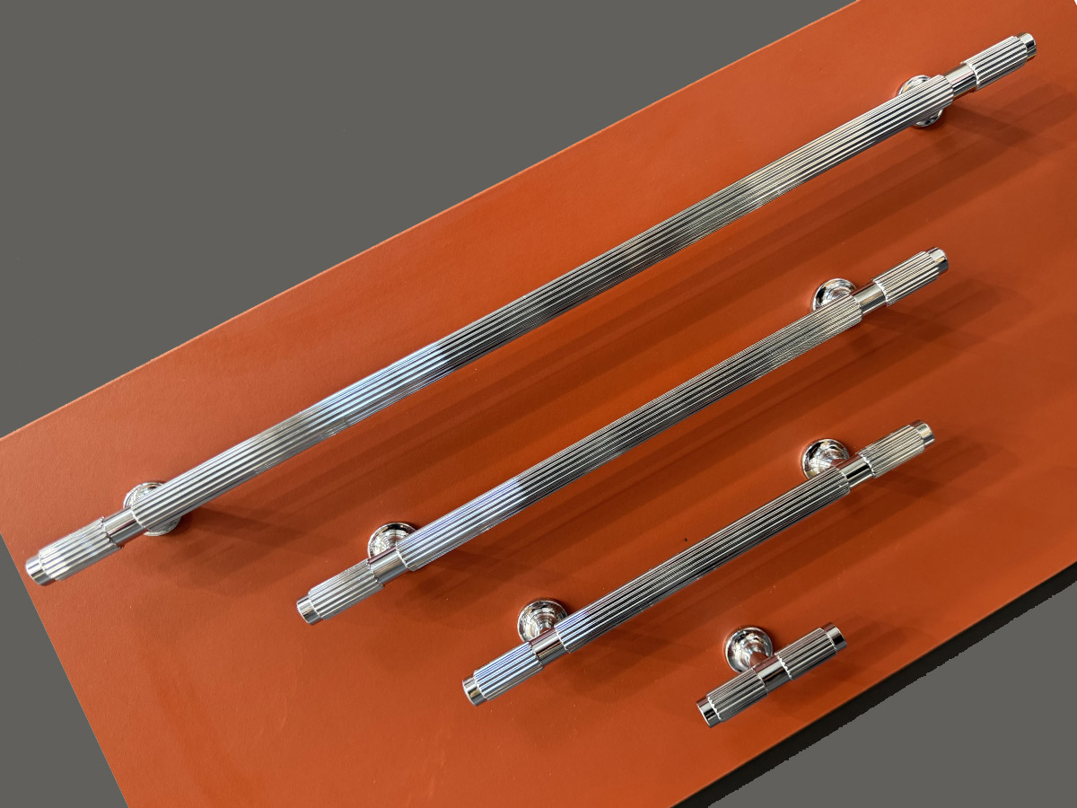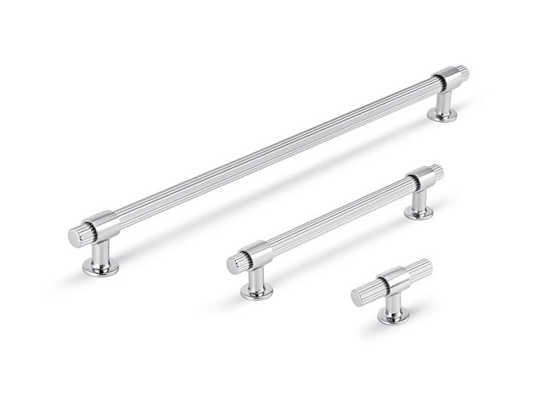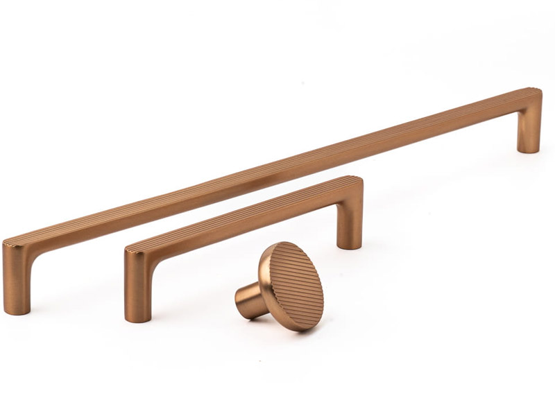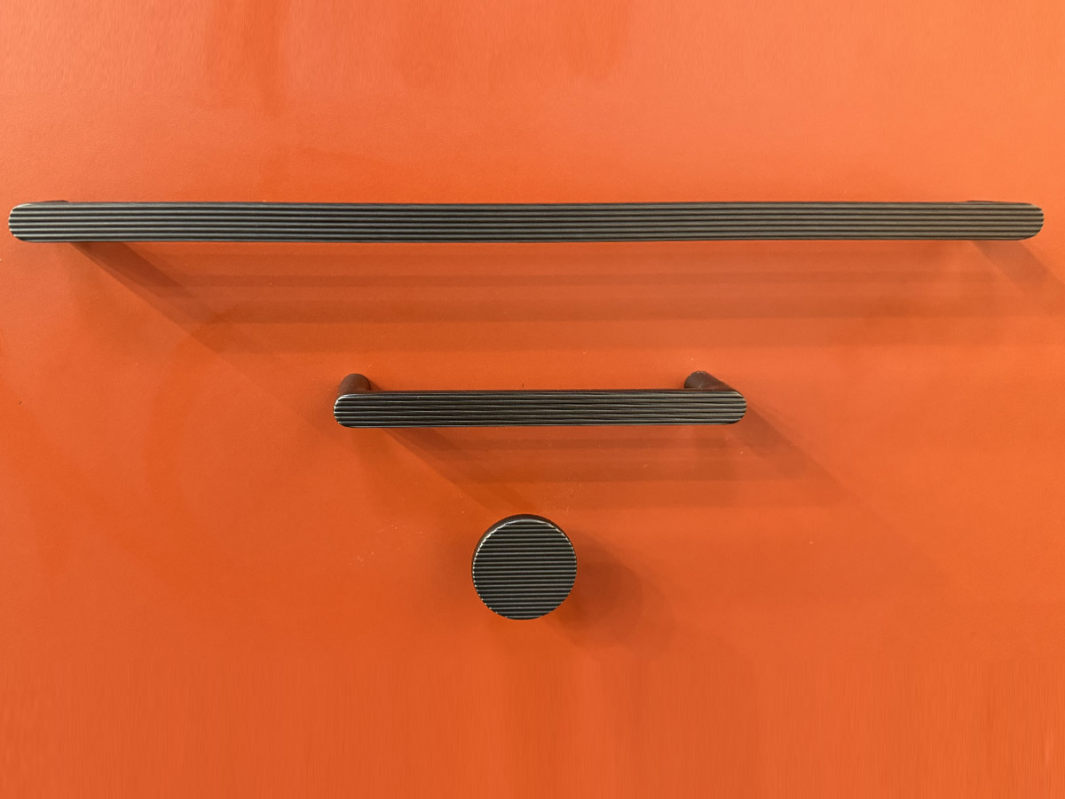 Uchwyt meblowy Ritmo łączy w sobie ponadczasową elegancję z nowoczesnym wyrazem. Jego smukła, cylindryczna forma została ozdobiona precyzyjnym, pionowym ryflowaniem, które dodaje głębi i tworzy intrygującą grę światła – uchwyt subtelnie zmienia wygląd w zależności od kąta obserwacji.