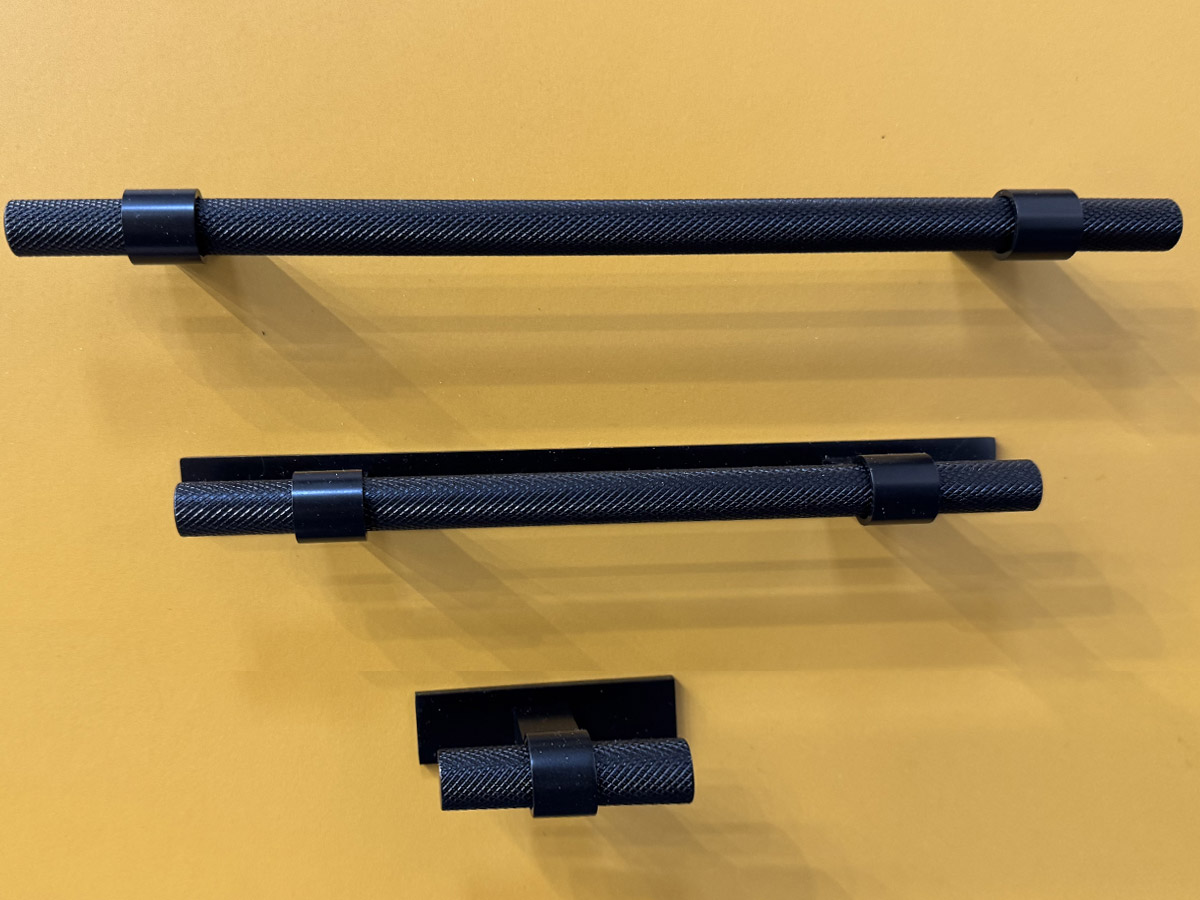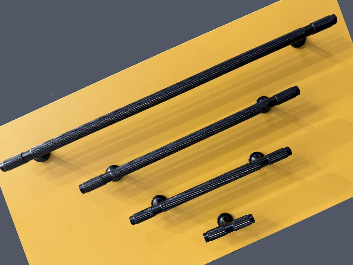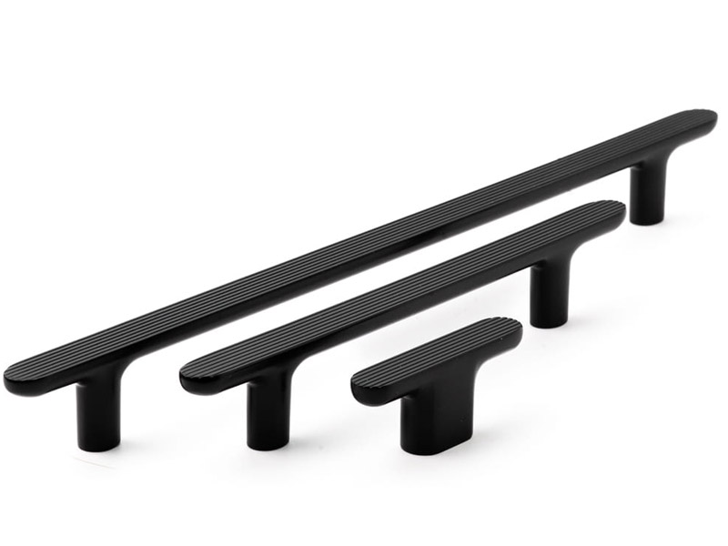 Kolekcja obejmuje zarówno gałki typu T-bar, jak i relingi o różnych długościach, co pozwala na swobodne dopasowanie elementów do rodzaju mebli i funkcji pomieszczenia. Dzięki temu możliwe jest tworzenie spójnych kompozycji – od drobnych szafek po duże fronty w kuchni czy garderobie. Utrzymane w tej samej stylistyce i kolorystyce elementy harmonijnie współgrają ze sobą, wprowadzając do wnętrza wrażenie porządku, równowagi i elegancji.