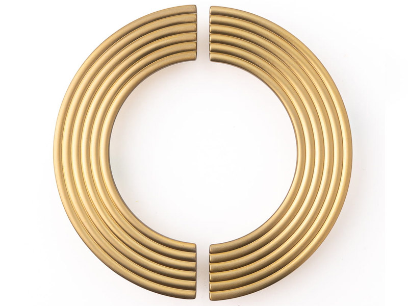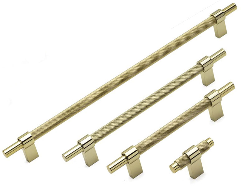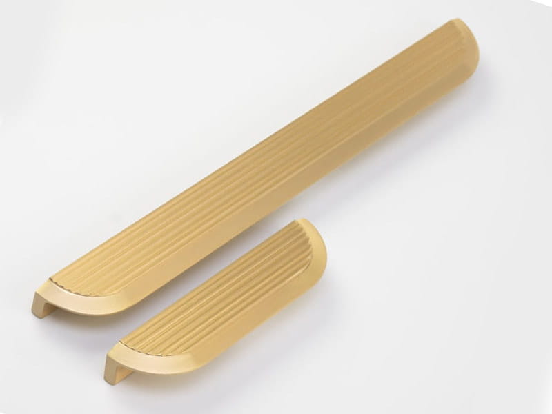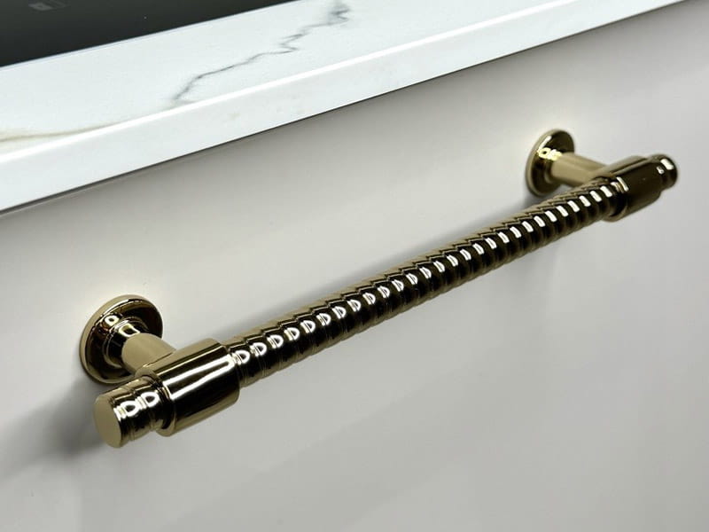 Uchwyty wykonane są z wysokiej jakości aluminium lub stopów metali przeznaczonych do takich zastosowań — co zapewnia trwałość, odporność na zużycie i stabilność montażu nawet przy cięższych frontach. Ich wykończenia w odcieniach złota (matowego lub połyskującego) pozwalają wprowadzić do wnętrza szlachetny akcent, który łatwo dopasować zarówno do nowoczesnych, jak i klasycznych aranżacji. Ryflowana faktura nie tylko pełni funkcję dekoracyjną — równoległe żłobienia nadają uchwytowi głębi i subtelnego efektu światłocienia, dzięki czemu front mebla zyskuje lekkość i elegancję.