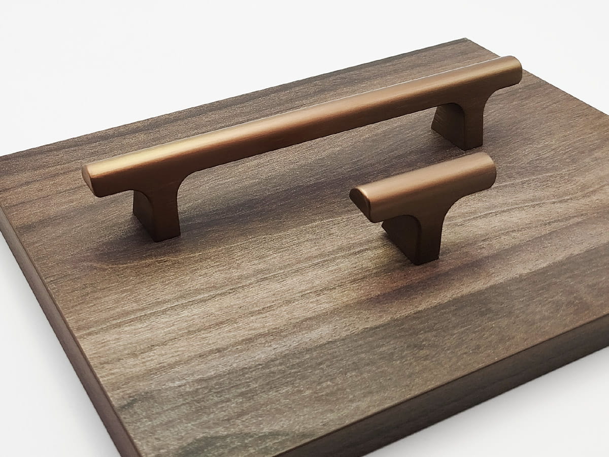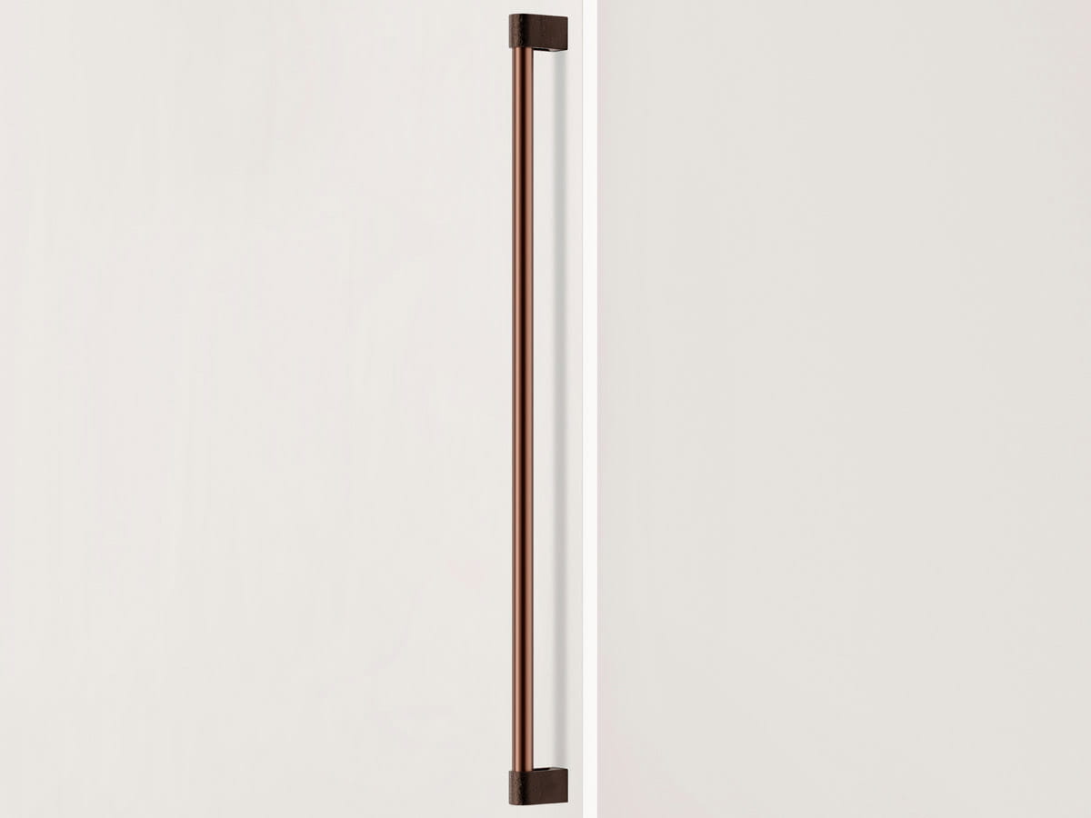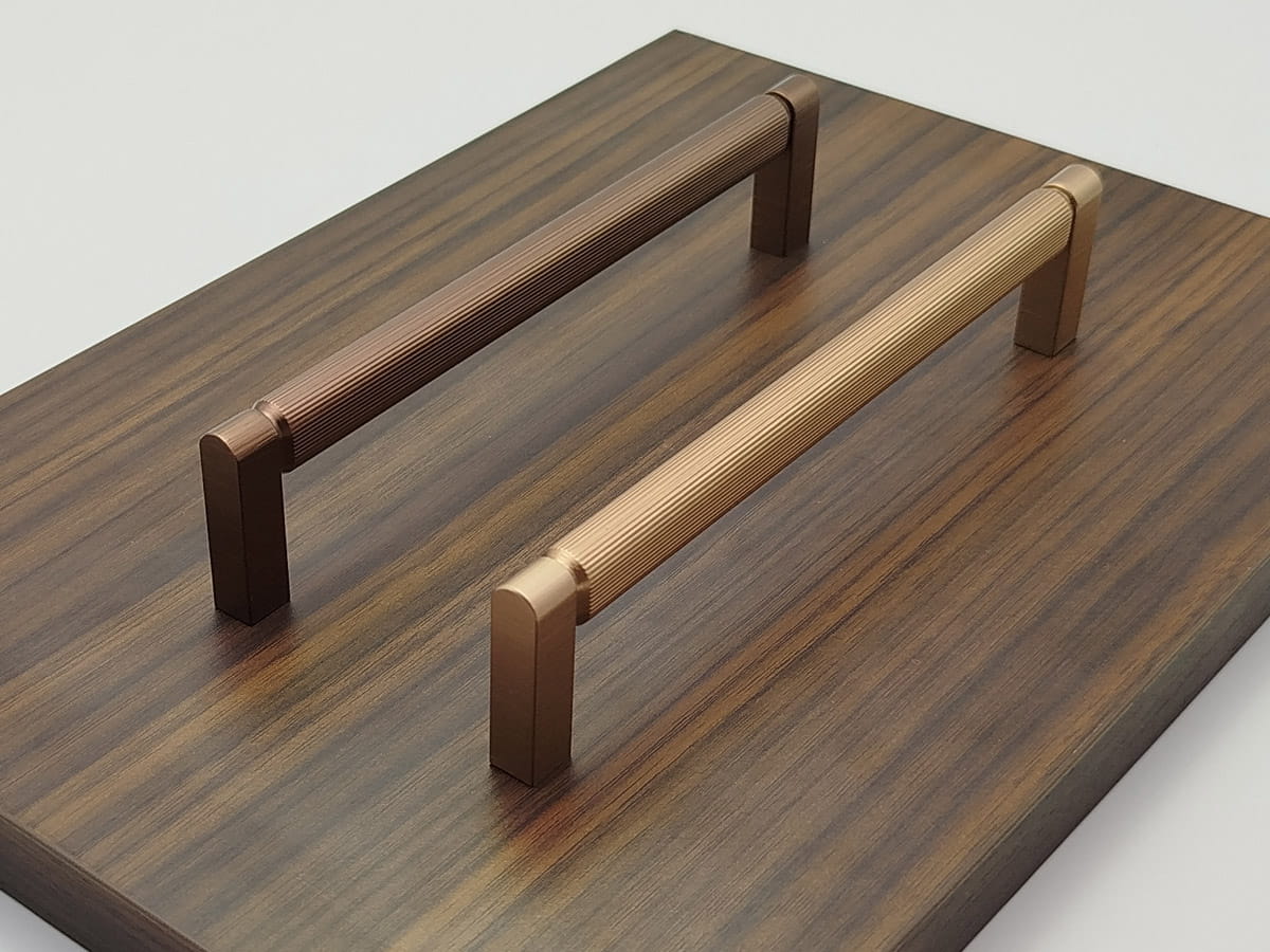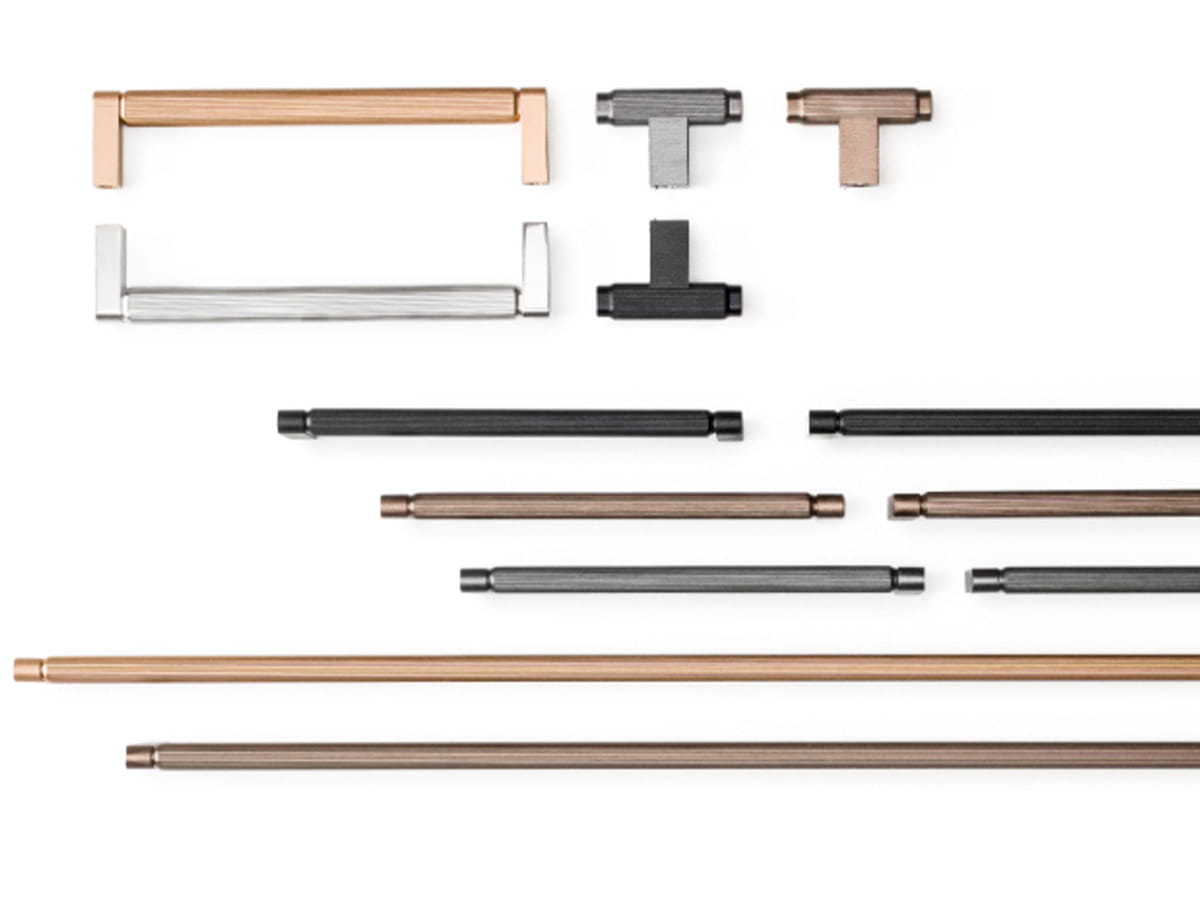 Dostępny jest w kilku wyrafinowanych wykończeniach: polerowany chrom, szczotkowany nikiel, szczotkowana miedź oraz szczotkowany mosiądz. Wersja w mniejszym rozmiarze pełni rolę gałki, co pozwala na ciekawe zestawienia – uchwyt i gałkę można łączyć na jednym meblu, tworząc spójną, ale dynamiczną kompozycję.