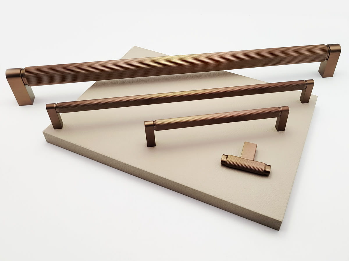 Uchwyt Brooklyn to elegancki i funkcjonalny dodatek, który doskonale komponuje się z wieloma stylami wnętrz – od klasycznych po nowoczesne. Wykonany z trwałego aluminium, dostępny jest w różnych rozmiarach i wariantach wykończenia, co pozwala dopasować go do indywidualnych potrzeb projektu. Łączy precyzję wykonania z subtelnym, architektonicznym designem, nadając przestrzeniom wyrafinowany charakter. Idealny do kuchni, łazienek oraz nowoczesnych mebli. Opcja z gałką w kształcie litery T podkreśla minimalistyczną estetykę i dbałość o detal. Wyraziste, pionowe żłobienia nadają mu industrialny wygląd i silny akcent wizualny. W ofercie znajdują się wykończenia takie jak: polerowany nikiel, szczotkowana czerń, tytanowa czerń oraz szczotkowany mosiądz cava – wszystkie dodają wnętrzom wyjątkowego charakteru.
