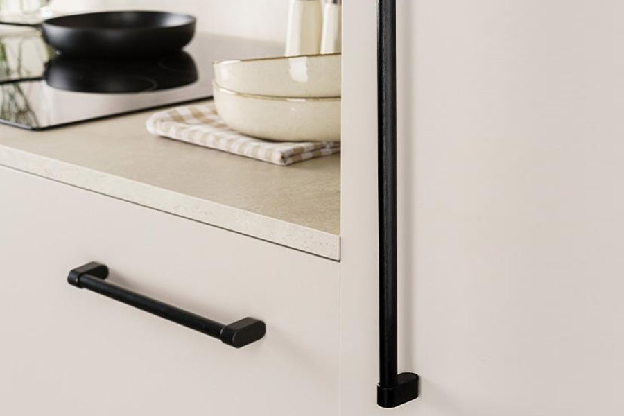 Klamka aluminiowa Cutt została stworzona z myślą o dużych kuchniach oraz kuchniach biurowych, które są dobrze widoczne z salonu lub jadalni. Model Cutt to udoskonalona, bardziej minimalistyczna wersja klamki Tamm. Charakteryzuje się nowoczesnym, solidnym wyglądem, a jednocześnie zapewnia wysoką funkcjonalność. Doskonale sprawdzi się zarówno przy krawędzi drzwi, jak i w tradycyjnej, centralnej pozycji klamek nowoczesnych.