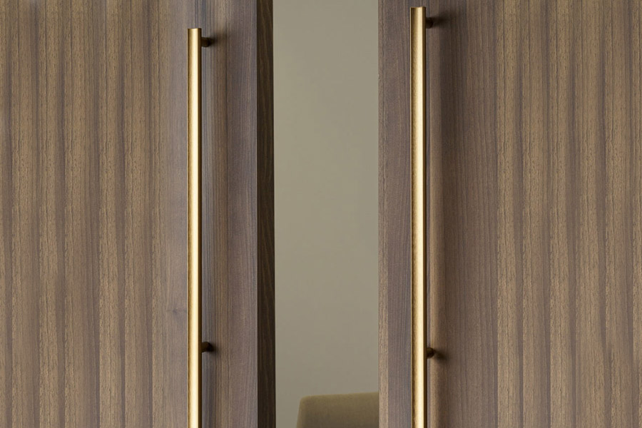 Uchwyt Arpa, stworzony przez Viefe Studios, czerpie inspirację z modelu Graf, charakteryzując się delikatnymi, pionowymi liniami, które dodają elegancji i komfortu w użytkowaniu. Jego wyrafinowany i uniwersalny design idealnie sprawdza się na drzwiach ramowych, podkreślając osobowość mebli oraz przestrzeni wokół nich. Wykonany z aluminium, dostępny jest w różnych wykończeniach, takich jak stal nierdzewna, ciemno szczotkowane mosiądzu, szczotkowana czerń oraz nowość - rustykalne mosiądzu, które doskonale współgrają z drewnem pokrytym melaminą oraz meblami o rustykalnym stylu, pragnącymi dodać odrobinę elegancji z industrialnym akcentem. Uchwyt dostępny jest w czterech rozmiarach, co umożliwia tworzenie ciekawych aranżacji w kuchniach, łazienkach, garderobach, sypialniach i innych spersonalizowanych przestrzeniach. Nowa gałka Arpa o średnicy 22 mm dopełnia kolekcję, poszerzając jej możliwości. Jest to szczególnie przemyślane rozwiązanie dla globalnych projektów aranżacyjnych, które wymagają subtelnej gałki o odpowiednich wymiarach, harmonijnie współgrającej z otoczeniem.