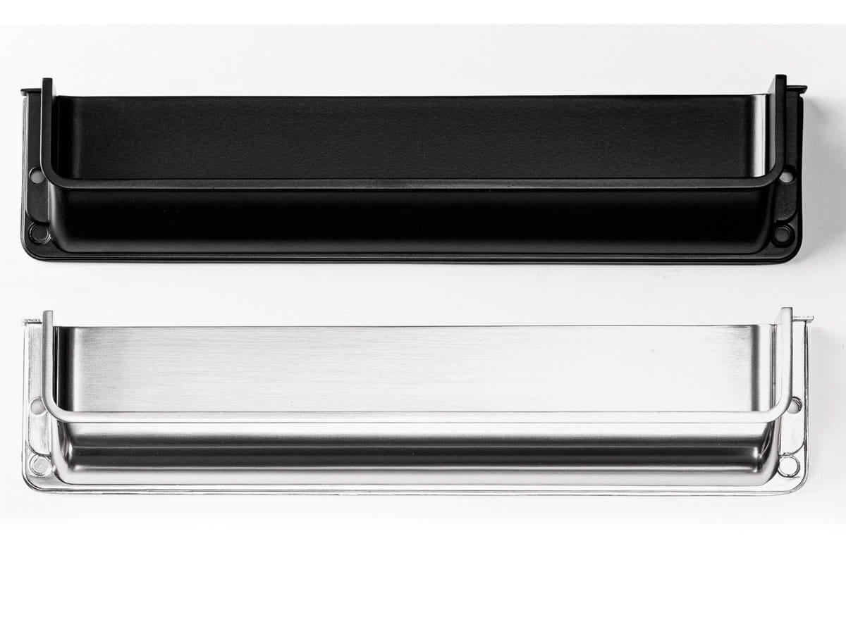 Zaprojektowany przez studio Teruel & Paré, uchwyt Fold to nowoczesna alternatywa dla tradycyjnych, wbudowanych uchwytów. Wykonany z zamaku, dostępny jest w wykończeniach ze szczotkowanego niklu, matowej bieli oraz matowej czerni. Jego uniwersalny design pozwala na montaż zarówno w poziomie, jak i w pionie. Wklęsła forma uchwytu sprawia, że jest nie tylko funkcjonalny i ergonomiczny, ale również nadaje mu indywidualny charakter. Dzięki swojej dużej wszechstronności uchwyt idealnie sprawdzi się w drzwiach przesuwnych, meblach biurowych oraz w aranżacjach w miejscach o ograniczonej przestrzeni. Dostępny jest w jednym, unikalnym rozmiarze.