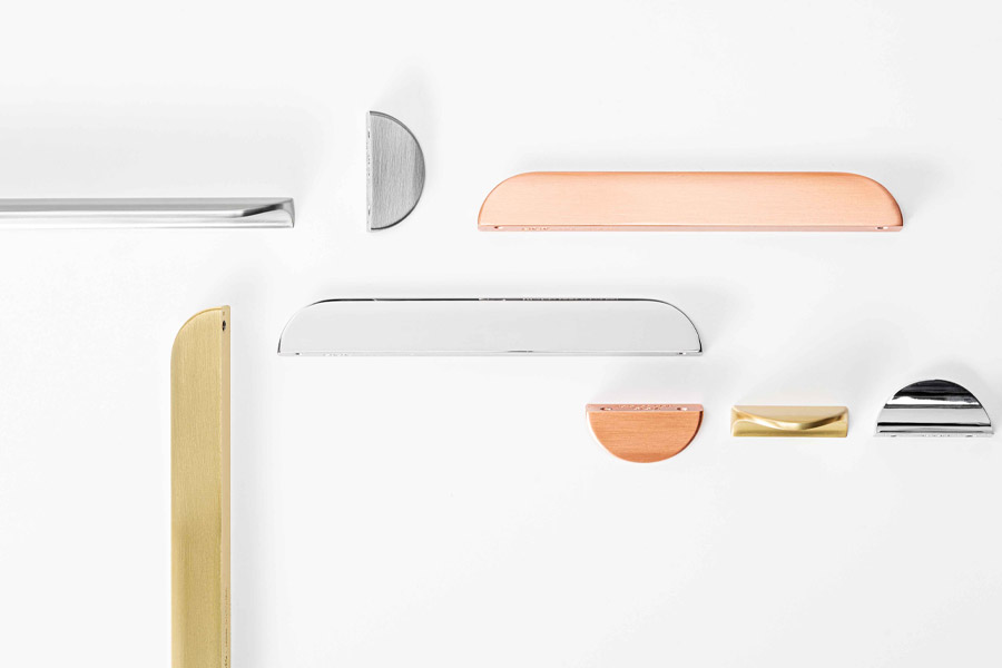 Uchwyty Curve są wykonane z profilu aluminiowego i dostępne w matowym wykończeniu czarnym lub białym (oferowane w sześciu rozmiarach), a także w wyglądzie aluminium, stali nierdzewnej i nowym szczotkowanym antracycie w odcieniu szarym. Charakteryzują się subtelnym designem i występują w dwóch grubościach, co umożliwia różne opcje aranżacyjne. Po zamontowaniu na meblach, dodają one stylowy i minimalistyczny akcent.