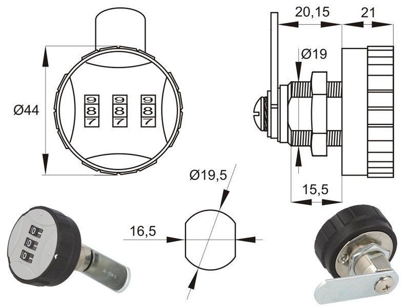 SISO-zamek z ryglem X1925 CAM07 Materiał: stop cynku Zamek z ryglem hakowym, obudowa stożkowa Cylinder ø'19mm x 25mm Zastosowanie: meble metalowe, meble drewniane, szklane itp. dane techniczne |